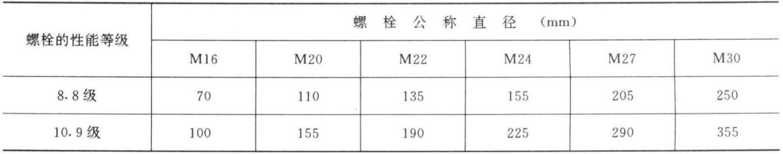 每个高强度螺栓的设计预拉力 P (kN) 表3.3-12
