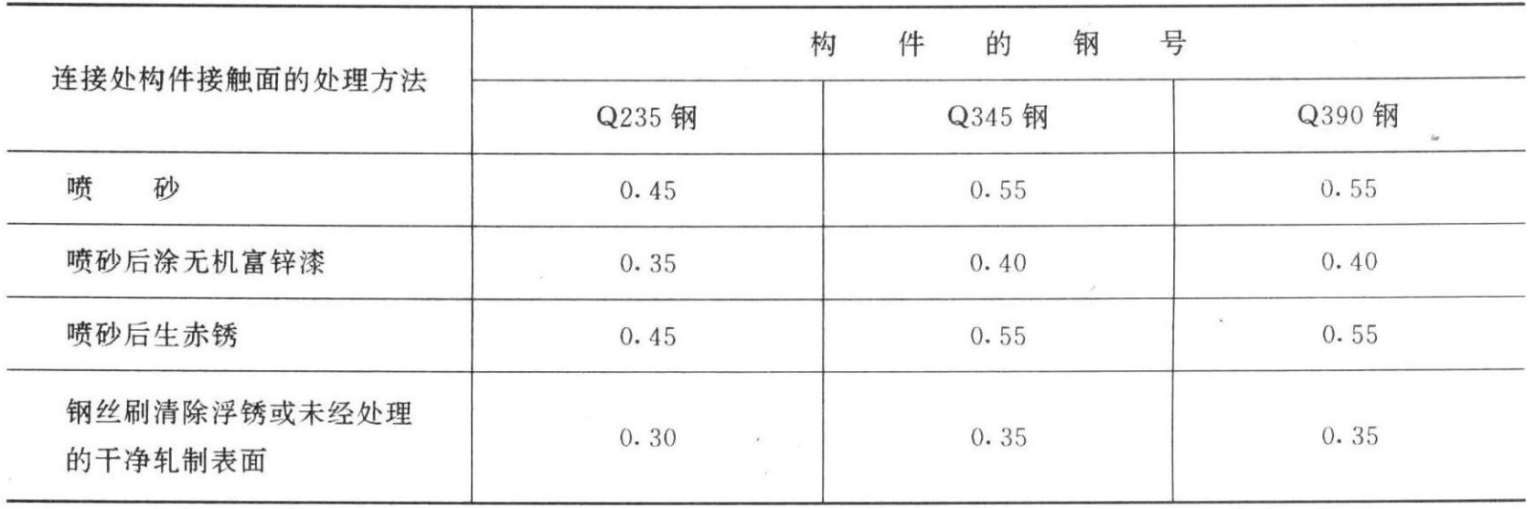 μ ——摩擦面的抗滑移系数,应按表3.3-11采用;