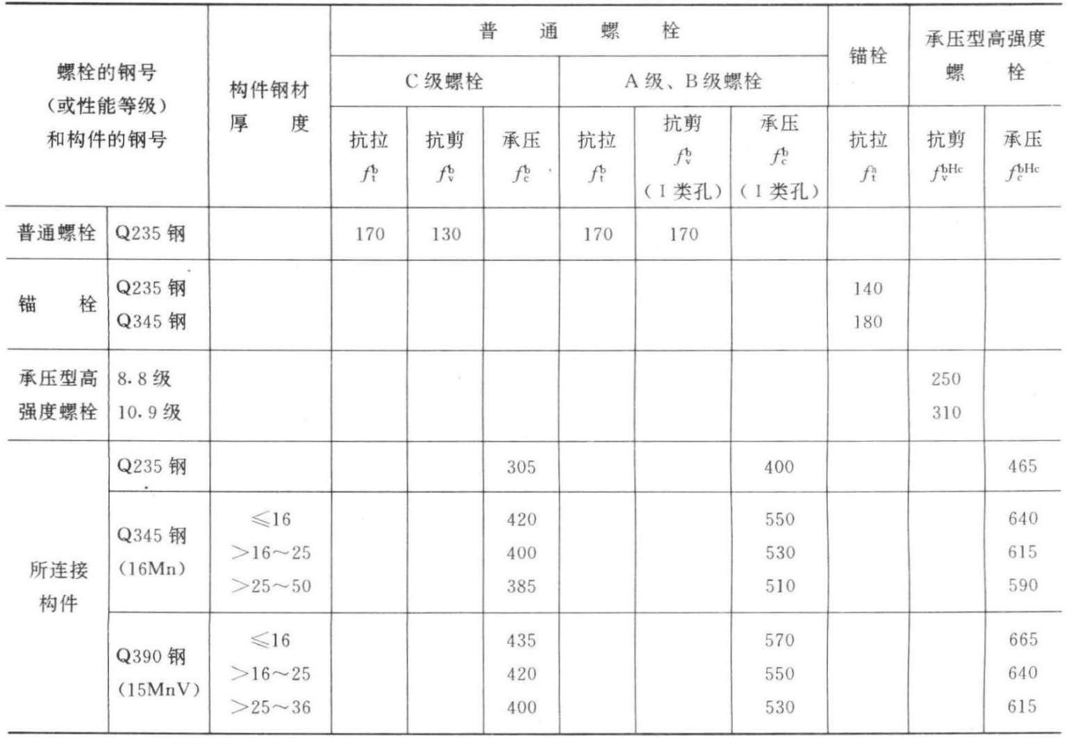 (二)普通螺栓与锚栓的强度(设计值)