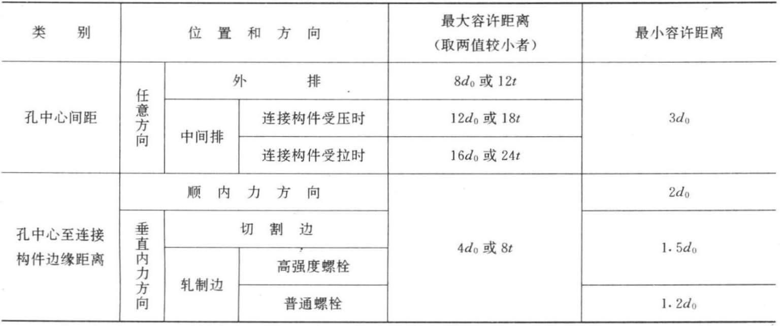 螺栓排列间距要求 表3.3-7