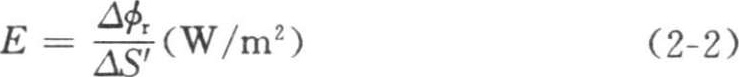 如果由一表面元Δ S '接受的辐射能流为Δ φ r ,则Δ φ r 与Δ S '之比定义为入射辐射能,它表示一个物体接收的辐射能流表面密度。即: