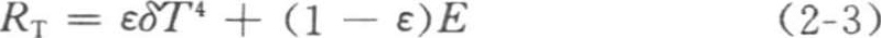 辐射能从一个较热物体上流向较冷的物体上,一部分辐射能被反射,余之被吸收。达到热平衡时,物体间的温度相同,吸收的辐射等于发射的辐射,此时的吸收率等于发射率( α = ε ),则总的辐射能 R T 可以用下式表示: