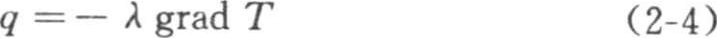 在固体中热的扩散是由物体的导热进行的。导热是材料内部的传热现象,现代理论物理将热流归入声子流现象,富里埃1822年给出了以下导热的现象学定律的矢量形式: