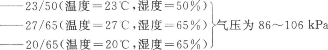状态调节的方式由大气环境和期限确定。后者或随意而定,或需要观测精确的质量稳定。状态调节大气环境由温度、湿度和压力全面描述,例如ISO/TC125规定了一般的3种大气环境和试验条件。