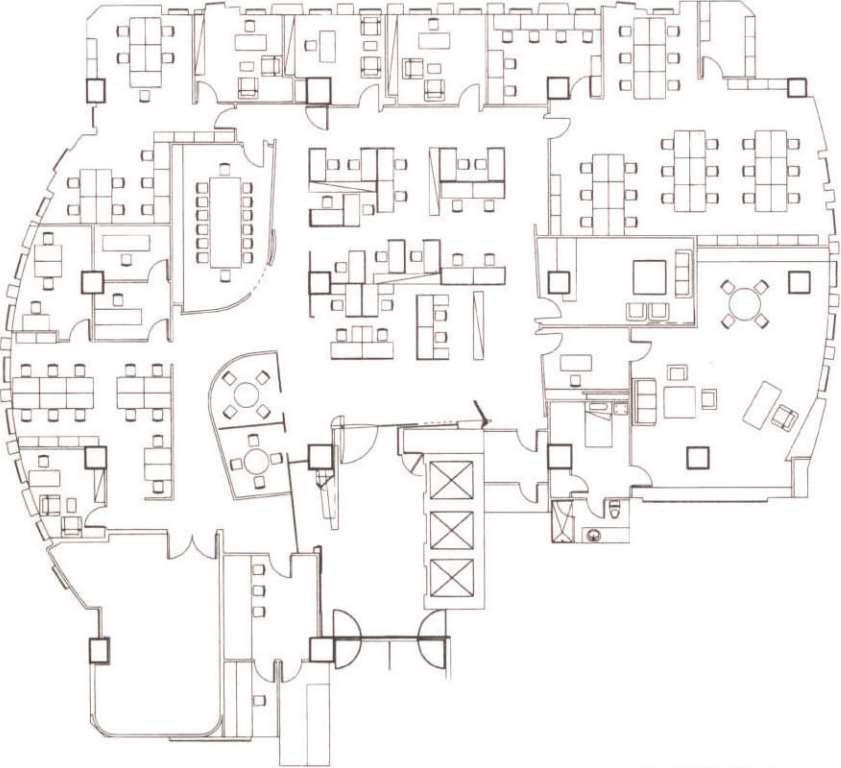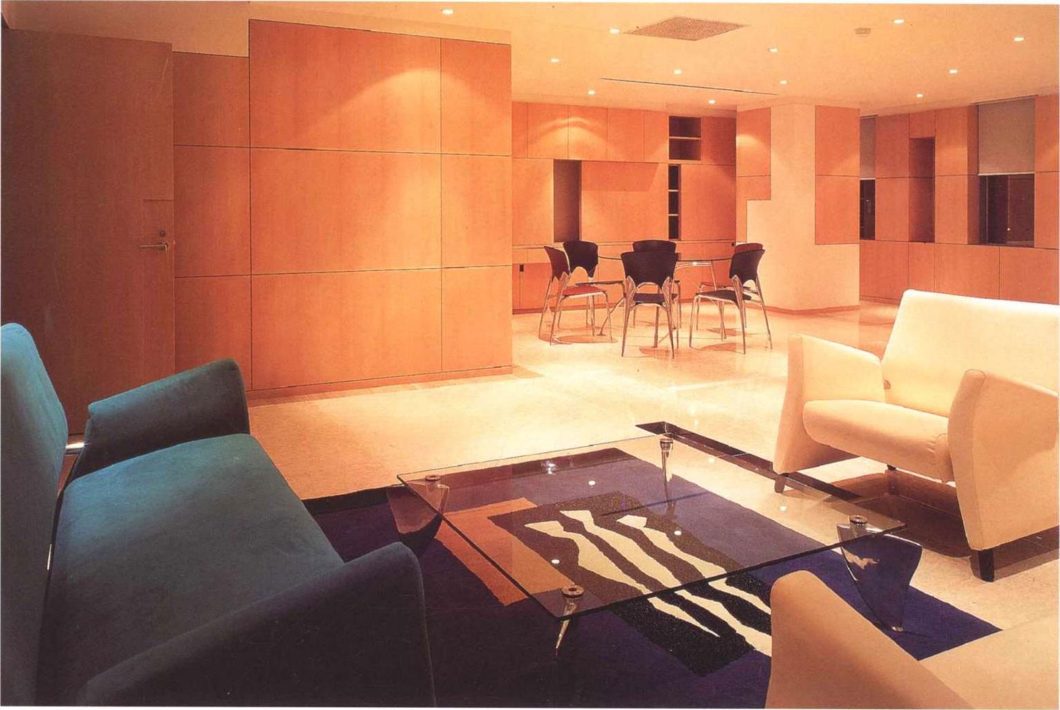 为此,设计师巧妙地以原有的结构柱和水泥墙搭配着木质墙面和喷砂玻璃所形成的隔墙,将空间划分为里、外两区。隔墙的设置颇具弹性,随着墙面的滑动,介于外墙与隔墙之间的周边工作区可随时与隔墙内所圈围住的中央工作区相互结合,共同运作;而中央工作区也采取开放式的规划,仅以隔屏简单区隔出不同的作业单位。所有的隔屏都可随着人事的变更和工作的需求加以变动、重组,以给予空间更大的可能性;于是,所有区间就在墙面滑动与隔屏拆组之间得以顺利转换机能。