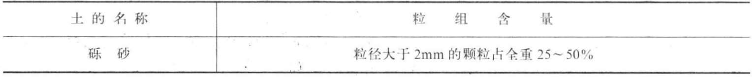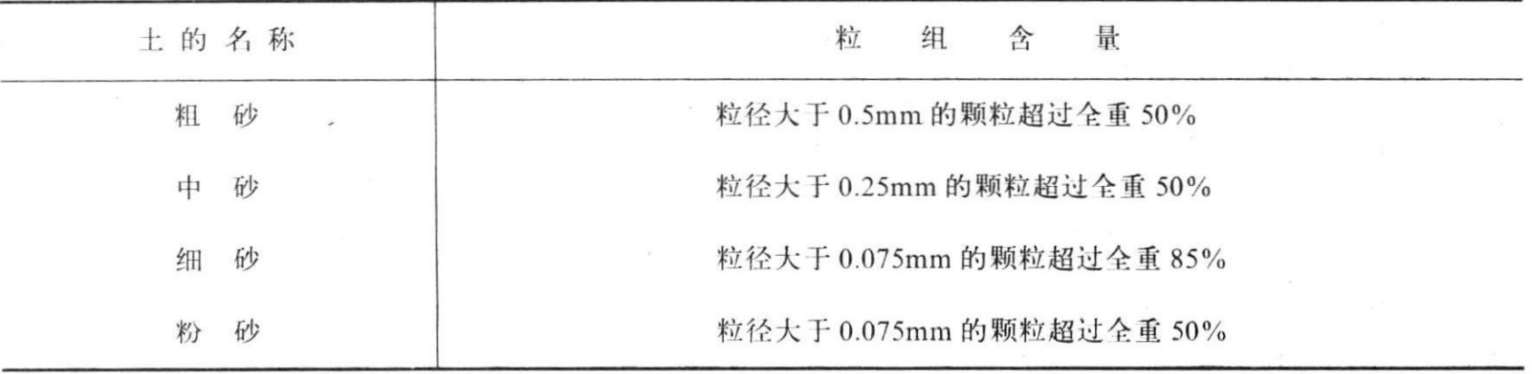 第 3.1.4 条 砂土应为粒径大于 2mm的颗粒含量不超过全重 50%、粒径大于 0.075mm的颗粒超过全重 50%的土。砂土可按表 3.1.4 分为砾砂、粗砂、中砂、细砂和粉砂。