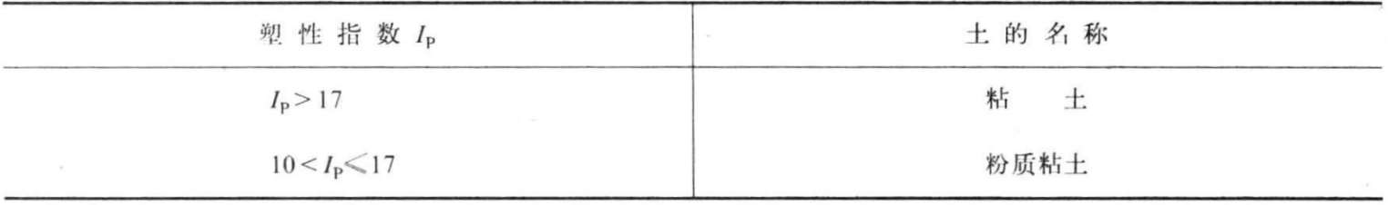 第3.1.6条 粘性土应为塑性指数 I p 大于10的土,可按表3.1.6分为粘土、粉质粘土。