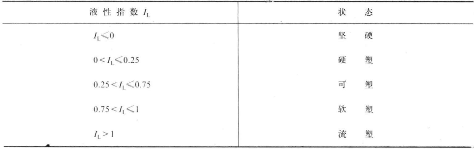 第3.1.7条 粘性土的状态,可按表3.1.7分为坚硬、硬塑、可塑、软塑、流塑。