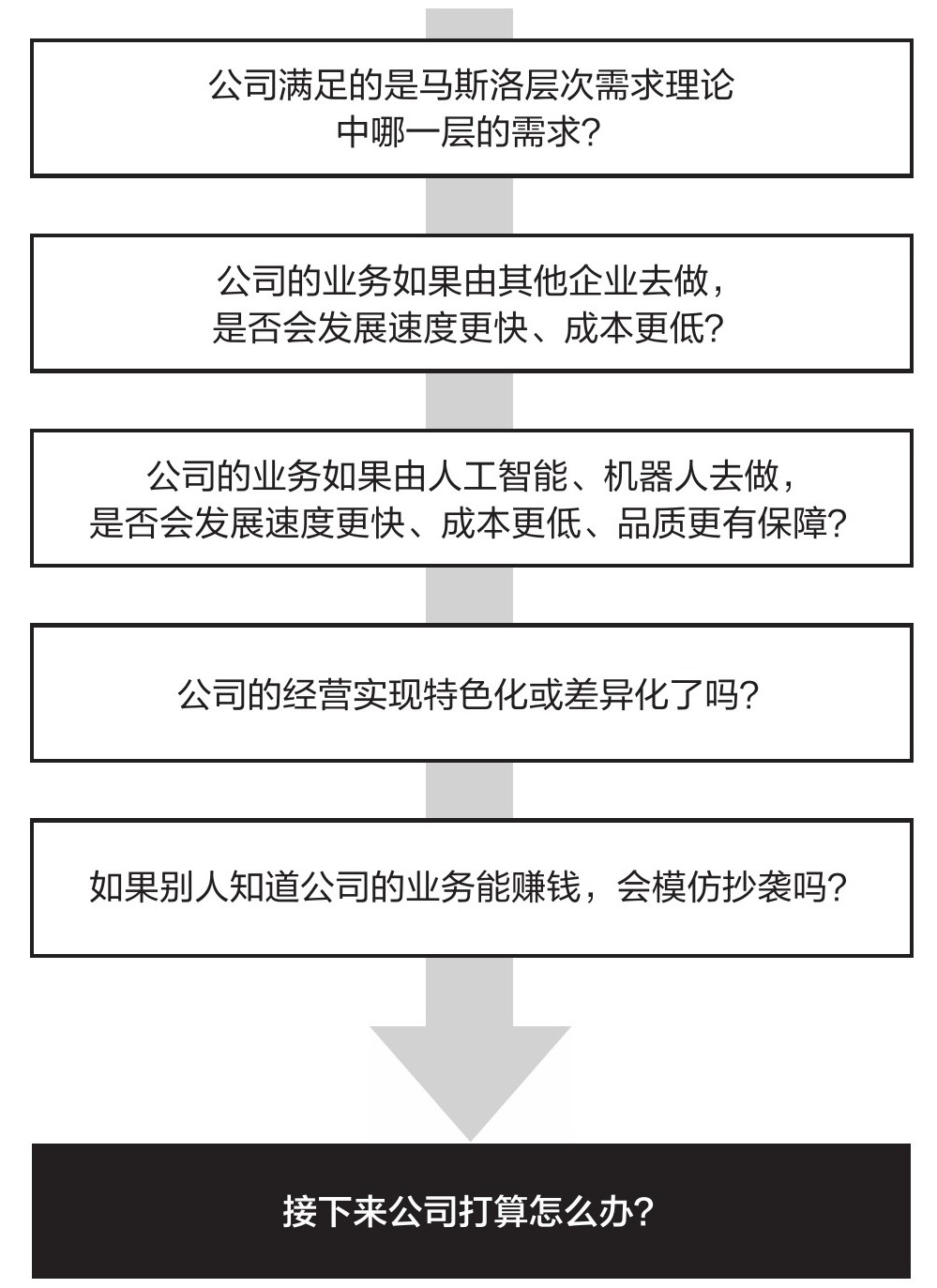 通过回答上面5个问题,相信你对自身企业目前的经营状况已经有了清晰的认知。如此一来,提出第6个问题的时机终于成熟:“接下来公司打算怎么办?”