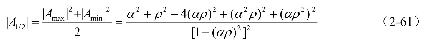 谐振模式半高全宽是指光学环形谐振腔传输功率降低至一半时谐振模式两侧光波的频率差。根据式(2-46),| A 1/2 | 2 可以表示为