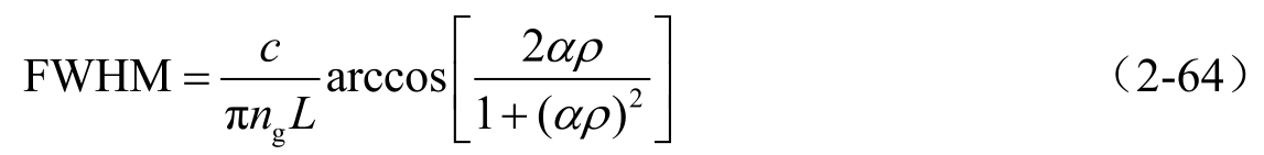 联立式(2-44)和式(2-63),环形谐振腔半高全宽FWHM可以表示为
