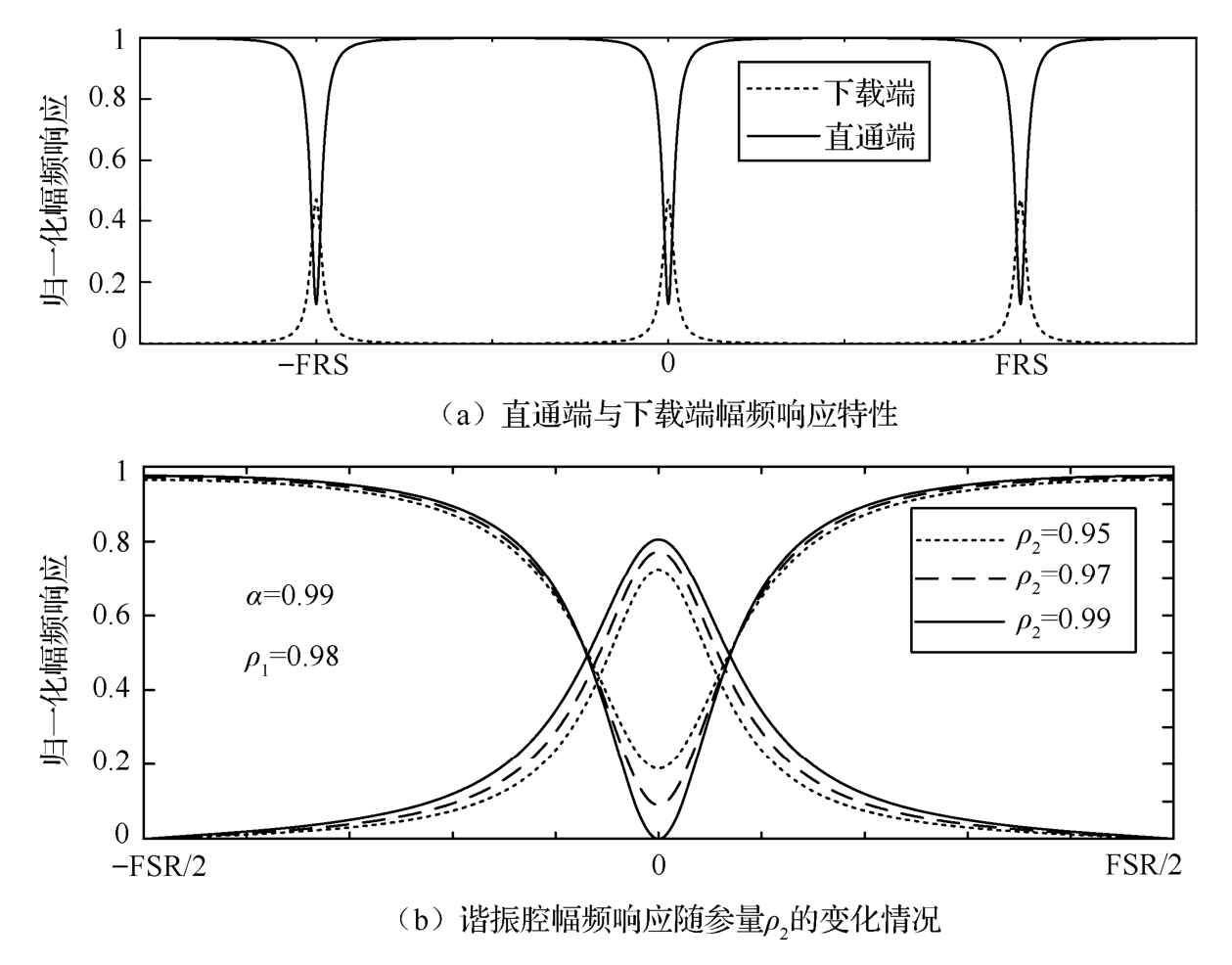 图2-24 上传/下载型光学环形谐振腔的幅频响应