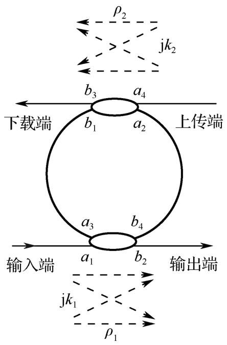 图2-23 上传/下载型光学环形谐振腔的传输模型