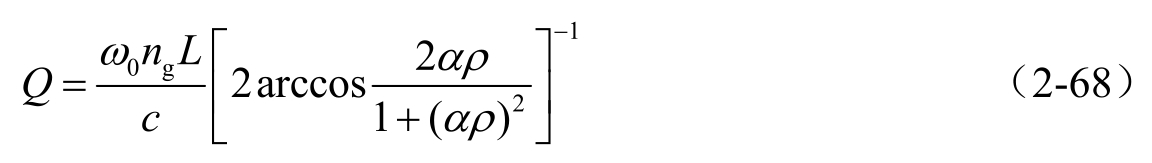 其中, E 为谐振腔储存总能量,- T d E /d t 表示单周期内耗散能量。由式(2-64)和式(2-67),在0 <αρ< 1条件下,品质因数与谐振腔基本参数之间的关系为
