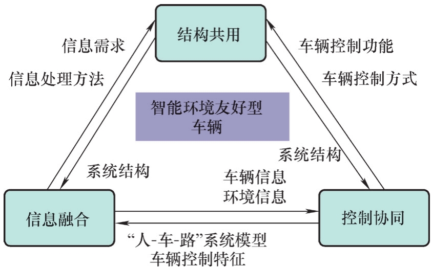 结构共用、信息融合与控制协同三大技术,构成了i-EFV系统设计、车辆及环境信息识别以及车辆综合优化控制的关键技术体系。这三项关键技术并不是独立存在的,而是相互联系,相互支撑,构成一个循环、优化的有机整体。如图2.7所示,结构共用技术着眼于执行系统、传感系统的结构优化设计,而设计的过程以信息融合所提供的识别信息需求、信息处理方法以及控制协同提供的车辆控制功能与控制方式等为基础;信息融合用于i-EFV复杂系统及环境信息的综合处理问题,而该过程需要结构共用提供优化的系统结构以及控制协同提供的“人-车-路”系统模型与整车控制特征等作为基础;控制协同着眼于系统的综合优化控制,需要结构共用提供的系统结构特征、信息融合提供的车辆及环境信息等作为支撑。