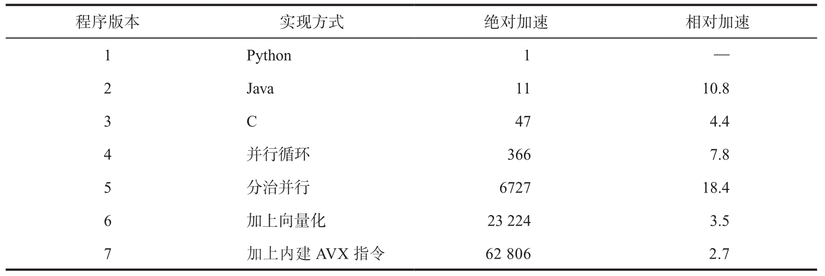 表1 通过性能工程加速两个4096×4096矩阵相乘的程序