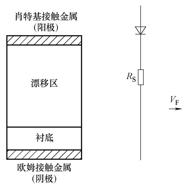 图1.4 功率肖特基势垒整流器结构及其等效电路