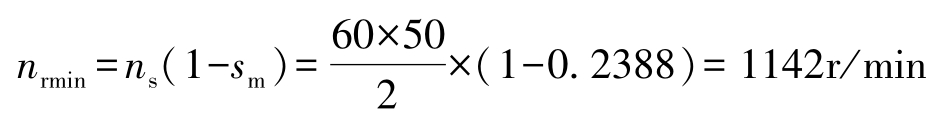 根据最大转差率可以计算对应的转速 n rmin 如下: