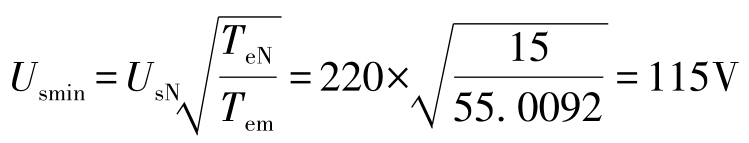 根据最大转矩 T em 可以计算出当电机输出额定转矩15N·m时对应的定子电压如下