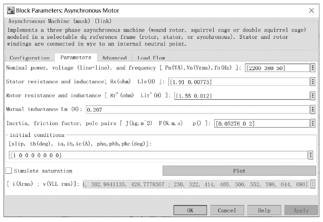 图3-13 异步电机模块“Asynchronous Motor”中参数设置