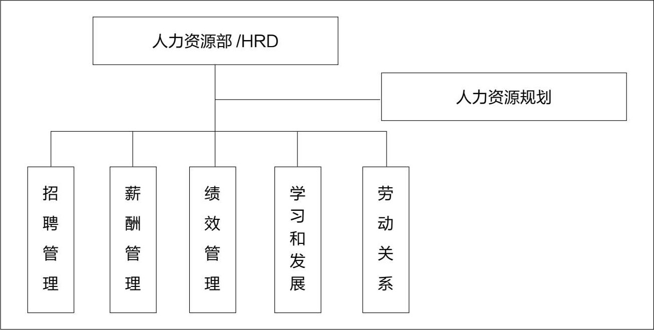 在传统工作模块下,人力资源部通常由招聘、薪酬、绩效、学习和发展以及劳动关系职能构成,有的企业可能会把其中某两个或三个职能合并,比如将薪酬管理和绩效管理合并;而规模小一点的企业也可能由一到两人负责多个模块的职能任务,但总体上的划分原则是根据HR传统六大模块展开的。正常情况下,企业会在这六大模块上再设一个HRD(人力资源总监)或者CHO(首席人力资源官)。外资企业、民营企业和国有企业的HR组织架构长期以来都是按照这个模式设置的。