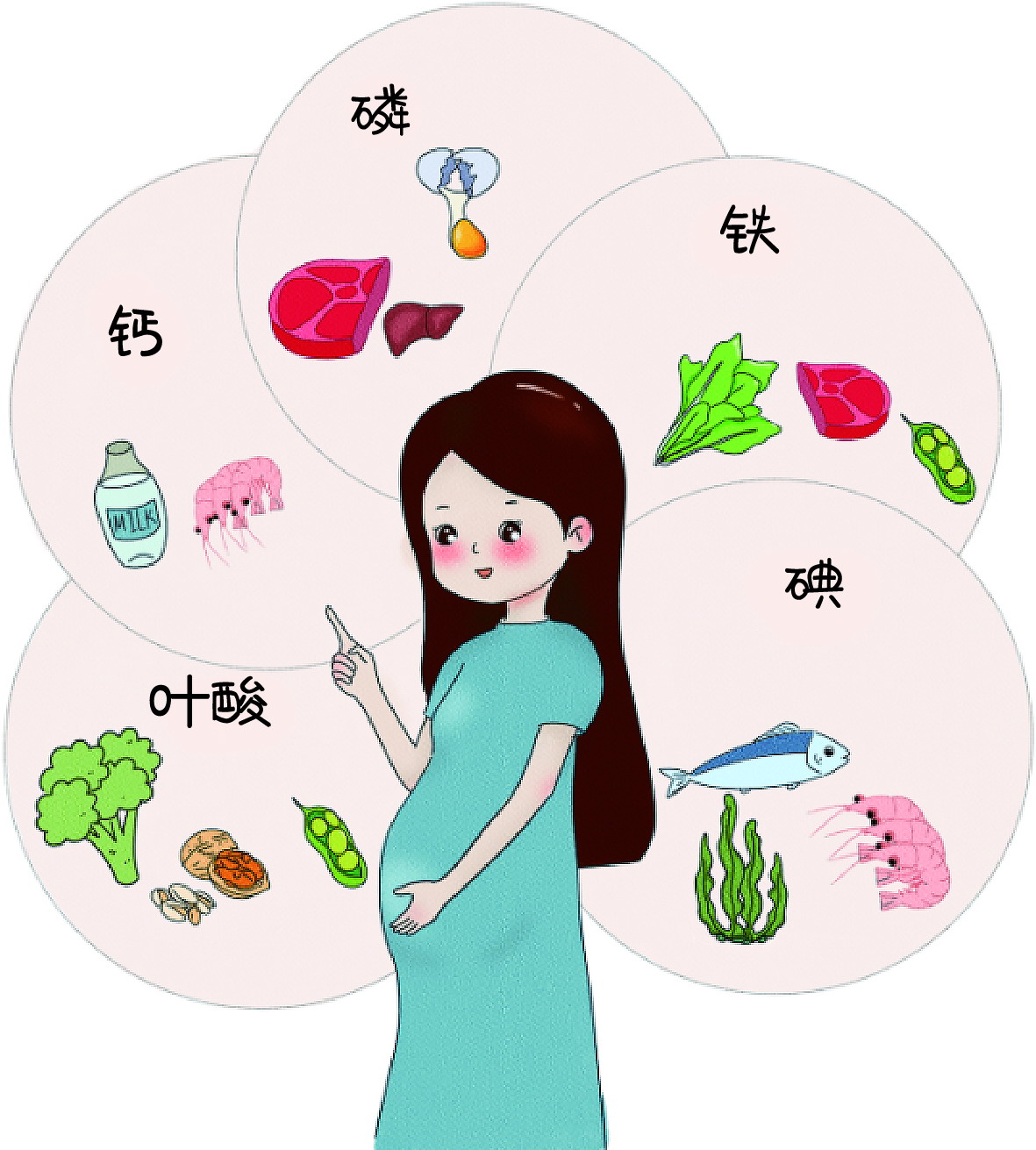 直播间里,助手举起了各种写着“钙”“磷”“碘”“铁”等字样的小牌子。爸爸拿过写着“铁”的牌子说道:“其他种类的微量元素,也是孕期必不可少的,在整个孕期也起到了重要作用。例如:妊娠期补充充足的铁,有助于降低孕期发生贫血的风险。动物性食品中的铁更容易被人体利用吸收,牛肉、羊肉、猪肉都含有较丰富的铁;绿叶蔬菜中大力水手爱吃的菠菜,也含有丰富的铁。”爸爸又拿过写着“碘”的小牌子:“碘在微量元素的大家庭中,也是不可或缺的一员。我们可以通过食用加碘盐,以及适量食用碘含量丰富的食物来补充碘元素,比如紫菜、鱼、虾等。”