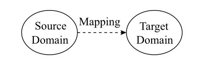 认知语言学家Lakoff和Johnson认为概念隐喻是通过另一种事物来理解和体验当前的事物,是概念系统中从源域向目标域的跨域映射(Lakoff and Johnson,1980:30)。隐喻是用一种事物来理解和体验另一种事物,是根据另一事物建构对某一事物的理解和体验。隐喻在本质上是人类理解周围世界的一种感知和形成概念的工具,是借助具体的概念来表达抽象概念(束定芳,2000:46)。认知语言学在描述隐喻过程时使用了如下三个专业术语,即源域、目标域和映射(见图1)。熟悉、具体的概念是源域,陌生、抽象的概念是目标域,将源域投射到目标域的过程是映射。
