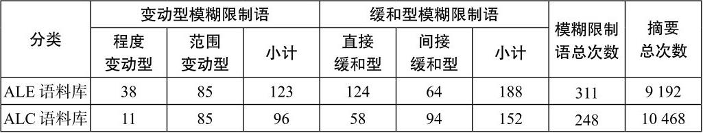 通过对比相关语料发现,中外应用语言学期刊论文的英文摘要部分都使用了一定数量的模糊限制语,但模糊限制语的使用情况、选择策略以及语言形式的选择上,两类语料库各有异同。