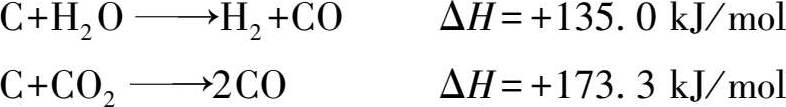 例如气化反应式(3.3)、式(3.8)其反应如下: