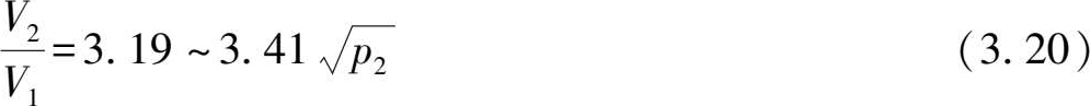 在常压气化炉和加压气化炉中,假定带出物的数量相等,则出炉煤气动压头相等,可近似得出,加压气化炉与常压气化炉生产能力之比如下式所示: