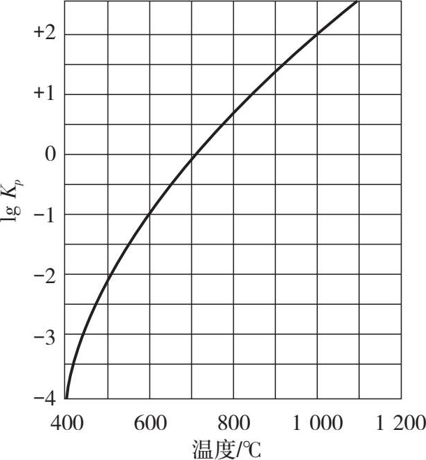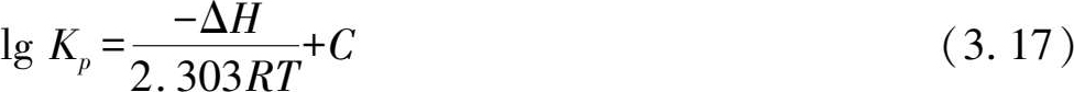 从上式可以看出:若Δ H 为负值时,为放热反应,温度升高, K p 值减小,对于这类反应,一般来说降低反应温度有利于反应的进行。反之,若Δ H 为正值时,即吸热反应,温度升高, K p 值增大,此时升高温度有利于反应的进行。