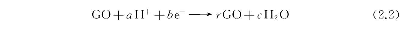 在氧化还原反应中,由于Ga具有较强的还原性 [71] ,液态金属提供了反应所需的电子。这也可以通过对酸性溶液中Ga和GO的循环伏安曲线的分析中得到。在GO的循环伏安曲线中,如图2-21所示,可以得到,在1.0 mol/L的HCl溶液中,GO的还原电位为-1.06V,并且从-0.6V开始,GO逐渐被还原。对于Ga,在1.0 mol/L的HCl溶液中,其循环伏安曲线出现三处氧化峰,分别依次对应Ga的3种不同价态,即Ga + 、Ga 2+ 和Ga 3+ 。循环伏安曲线的主要的氧化峰出现在0.82V,代表Ga 3+ 是Ga的稳定离子状态。因此,在Ga的氧化过程中释放出的电子可以传递至GO,进而发生式(2.2)中的氧化还原反应。也就是说,Ga在酸性条件下可以部分还原GO。另外,在电子传递过程中产生的局部电场将促进GO在液态金属纳米颗粒表面的自组装 [57] 。