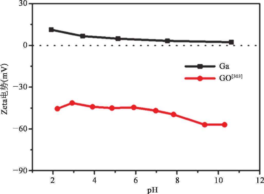 图2-19 不同pH的水溶液中GO和Ga纳米颗粒的Zeta电势变化 [53]