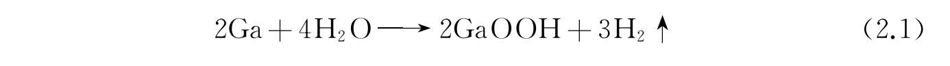 在制备不同形貌的可变形的液态金属微纳米颗粒时,研究者发现烧杯中有大量气泡附着于壁面上。由文献可知 [38] ,镓基液态金属与水反应可生成棒状的GaOOH和H 2 ,其化学方程式为: