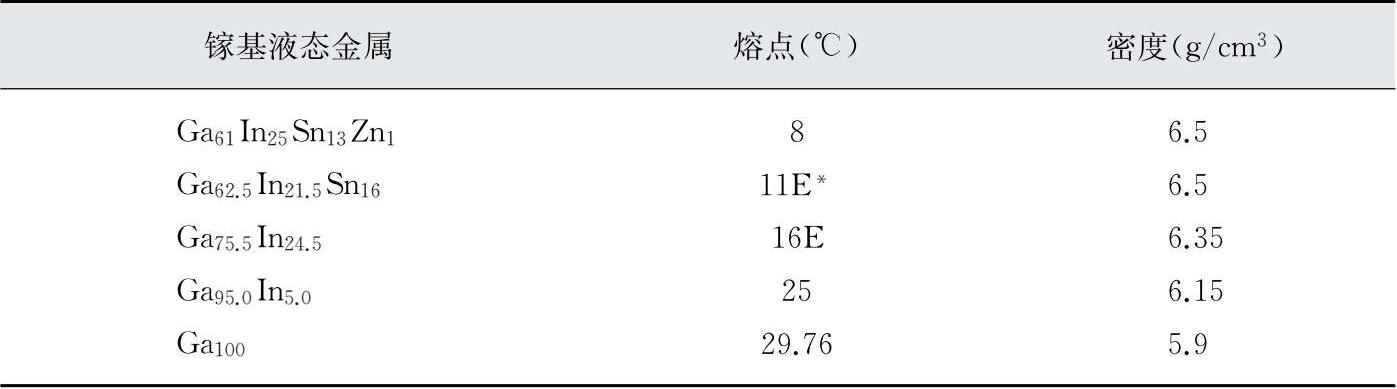 表1-2 几种典型镓基液态金属