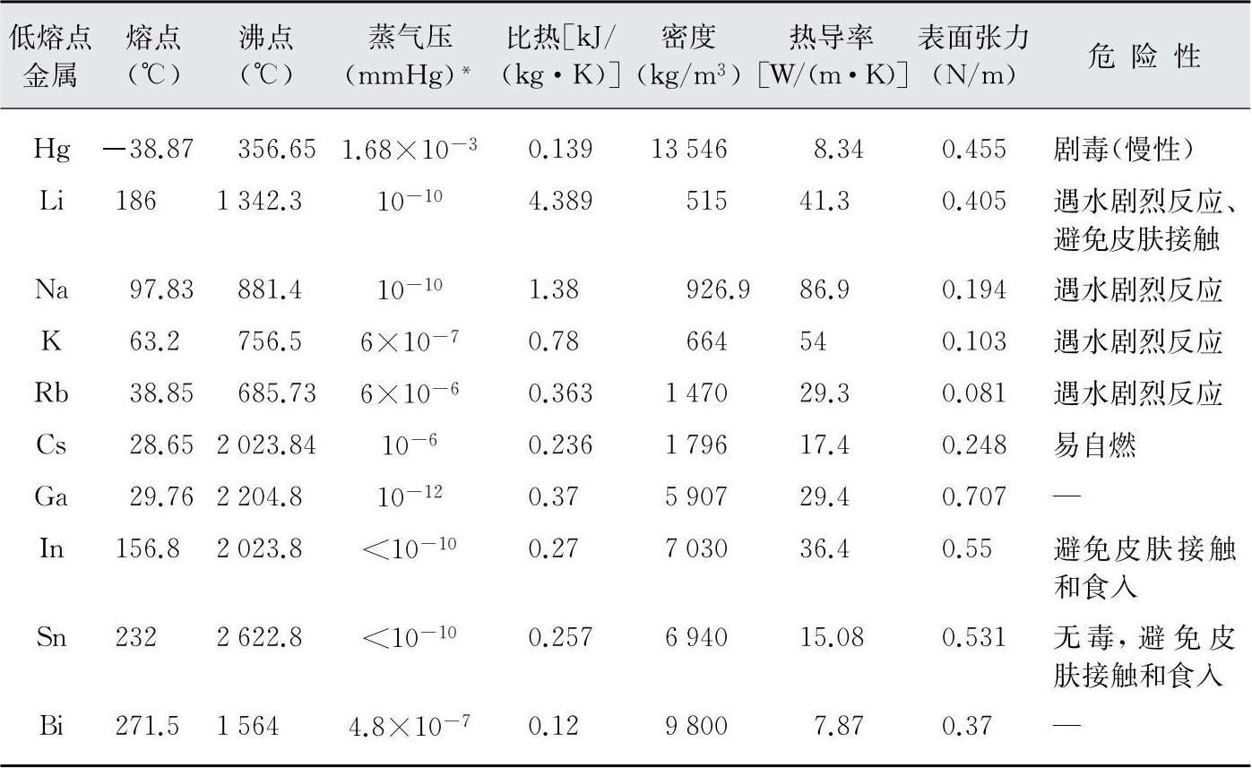 表1-1 几种典型低熔点金属单质的物理性质
