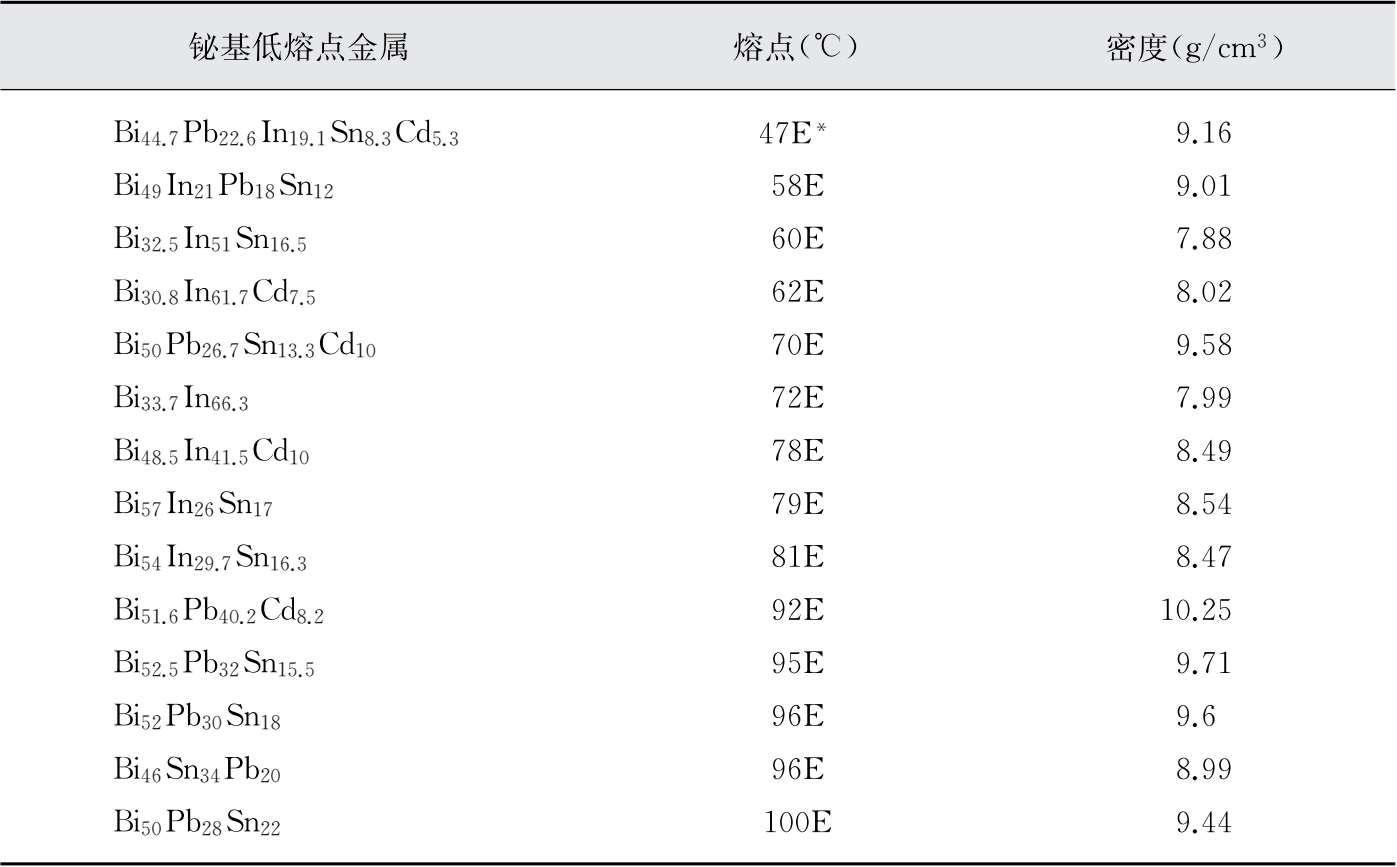 表1-3 几种典型铋基低熔点金属