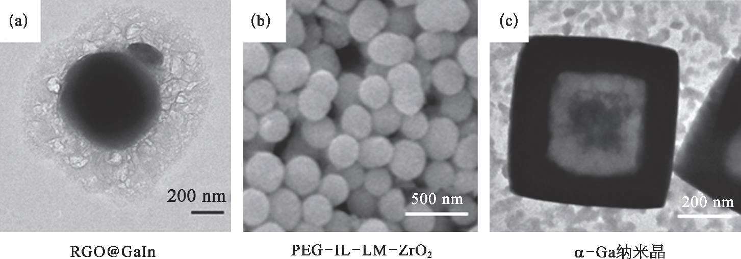 镓基纳米液态金属材料主要指以Ga单质或镓合金及镓氧化物组成的纳米液态金属材料,此外还包括镓基金属与其他金属材料[如Cu、Fe、镍(Ni)、钴(Co)、Ag、钨(W)等及其金属氧化物]复合的纳米材料。