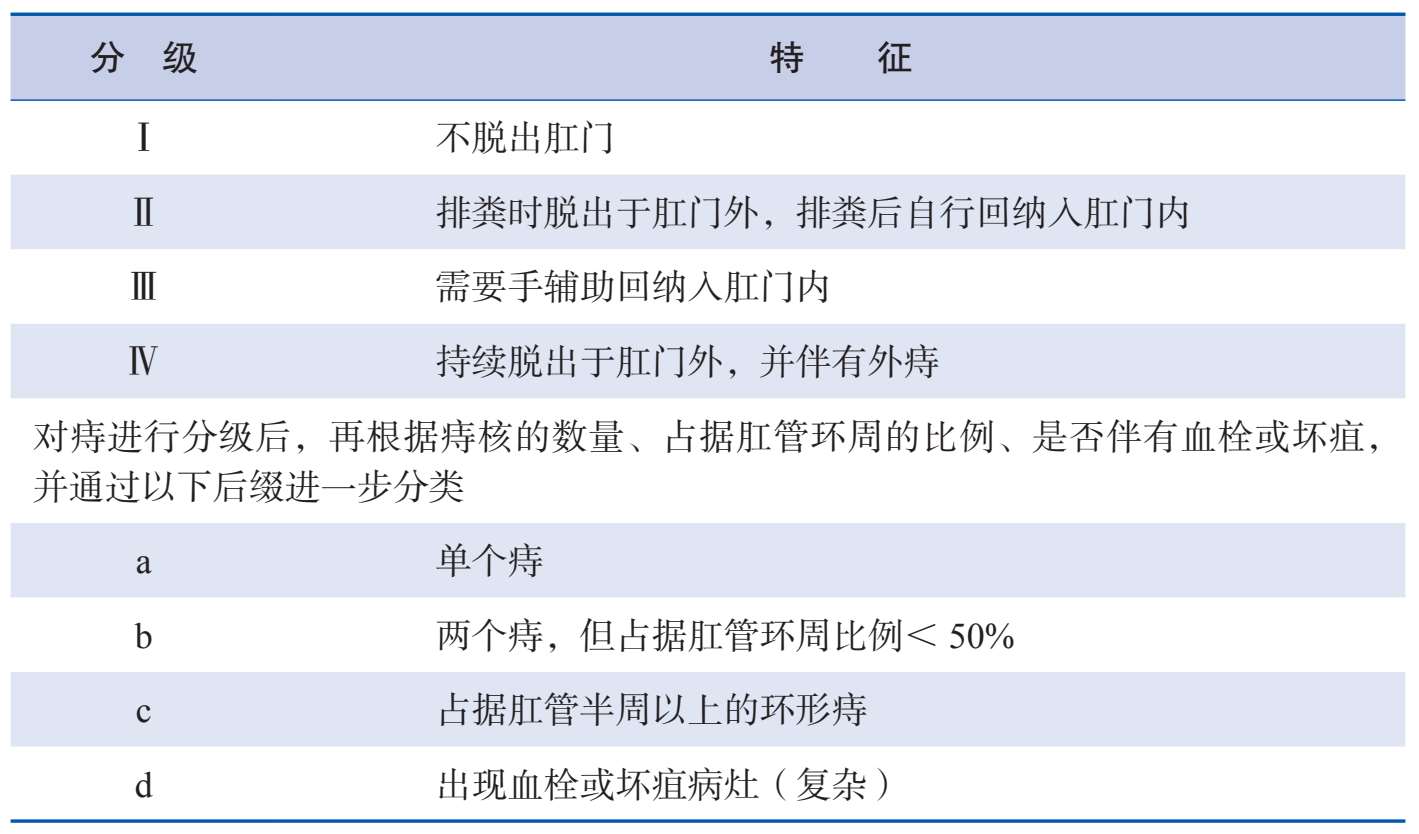 表 2—1 《印度结直肠外科医师协会(ACRSI)痔的管理实践指南 2016》关于痔的分类方案