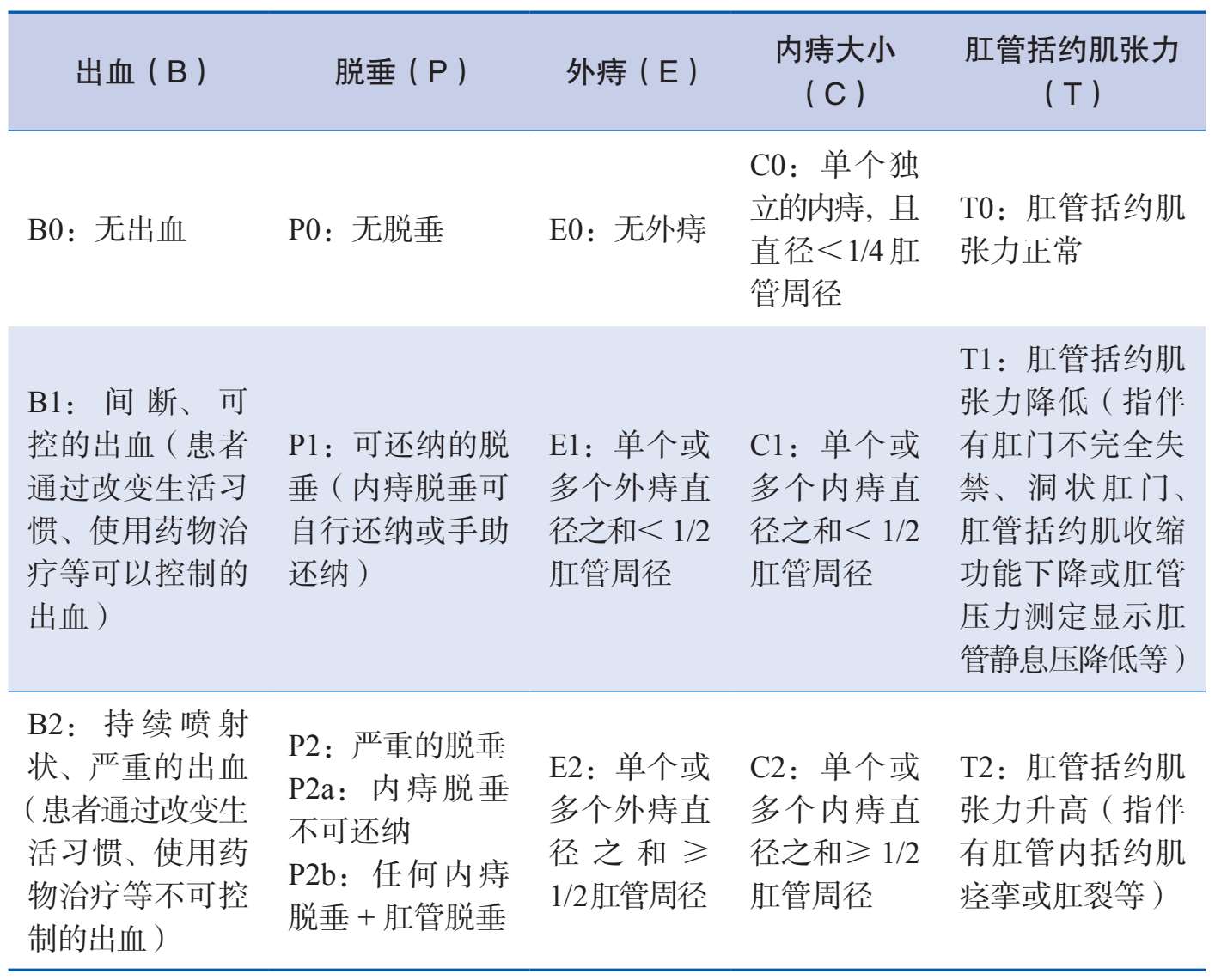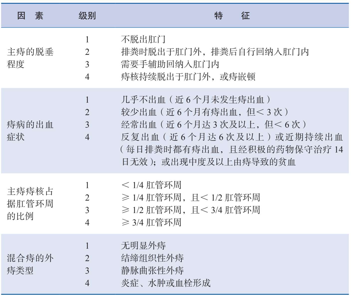表 2—3 内痔与混合痔的“四因素”痔评估方案