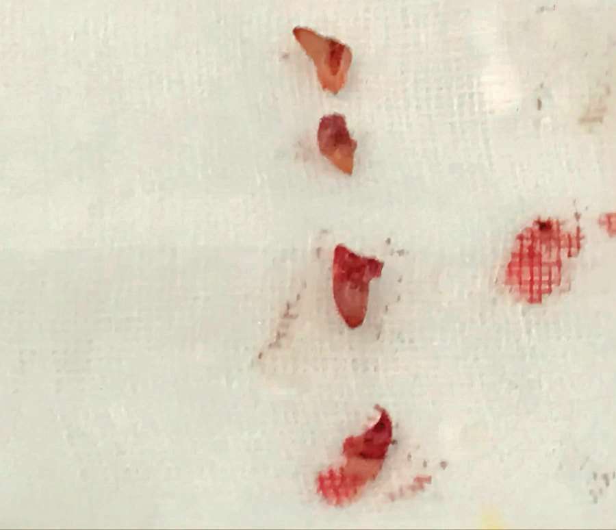 图 2—28 手术切除多发性肛乳头肥大