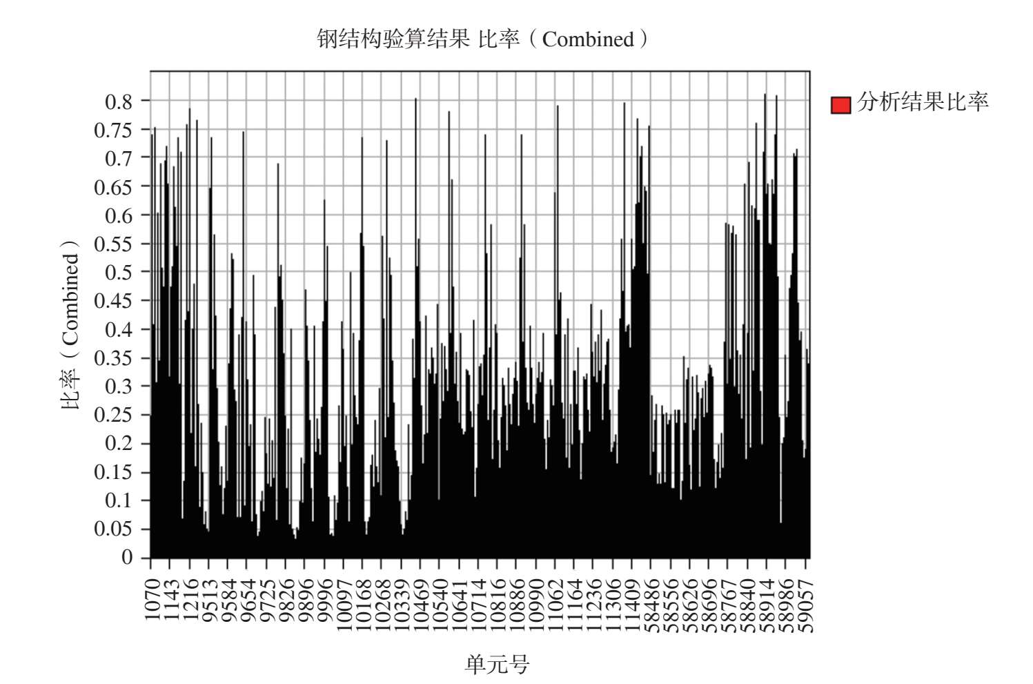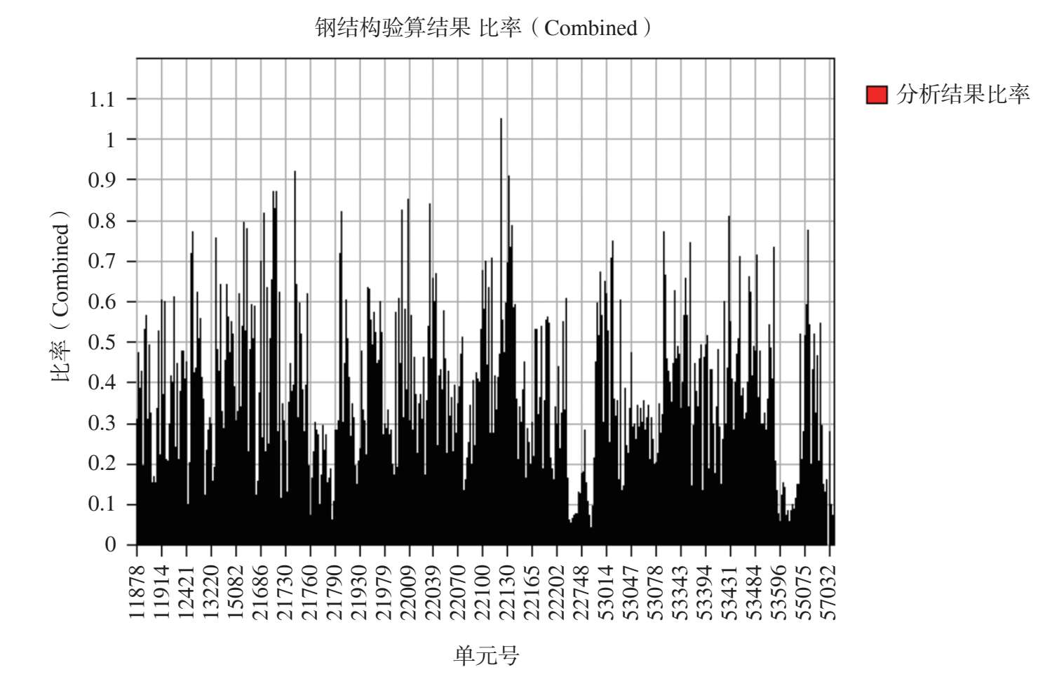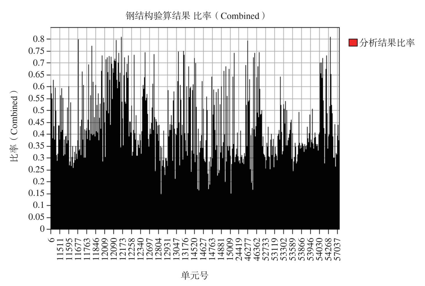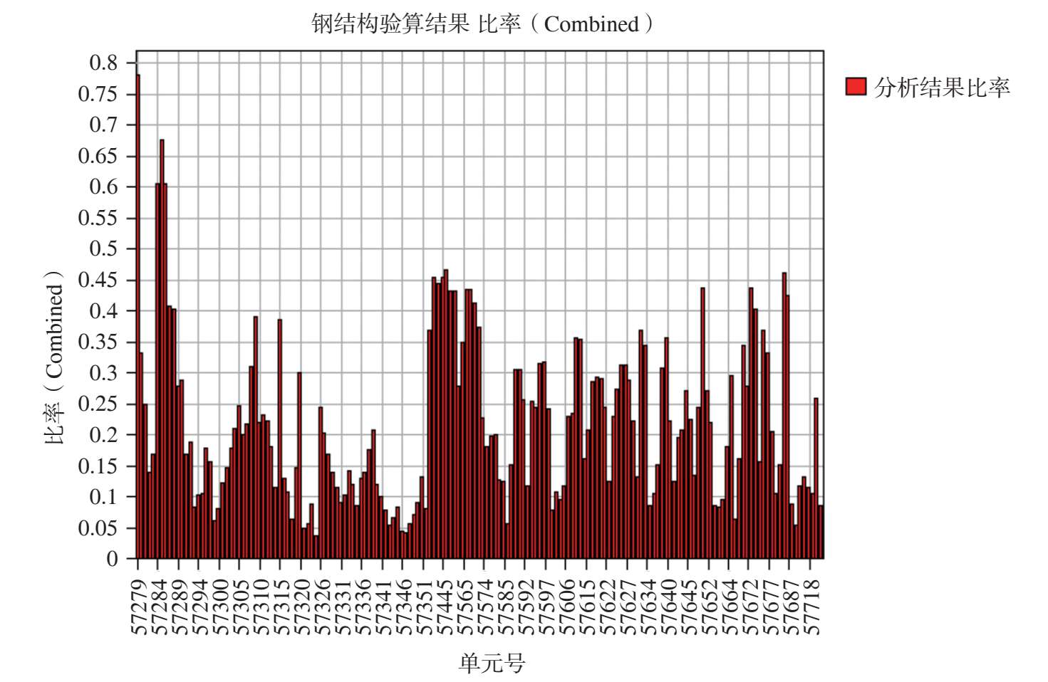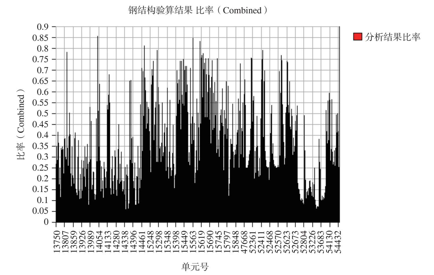 图 2-54 最不利组合工况作用下其余钢构件杆件应力比