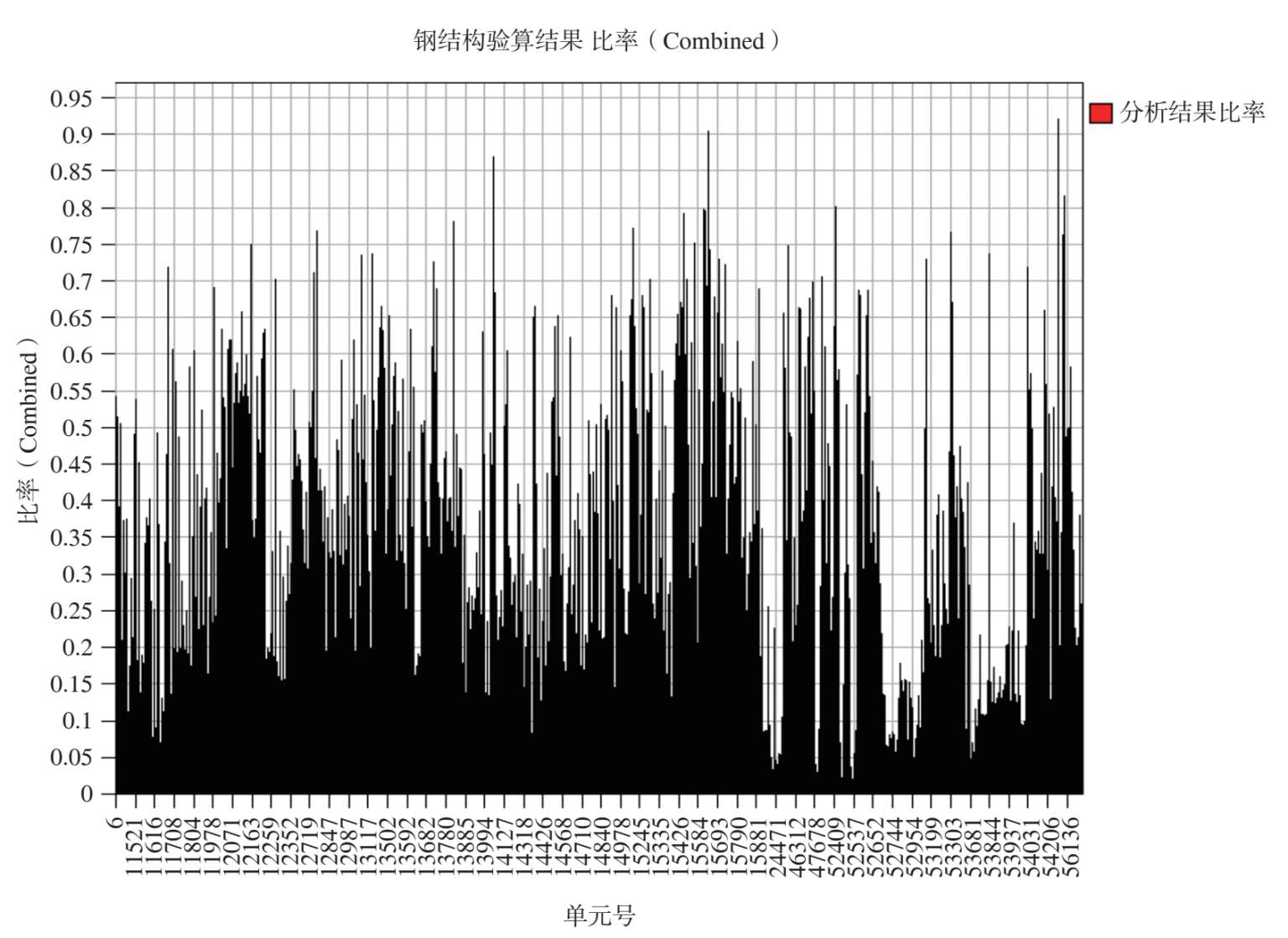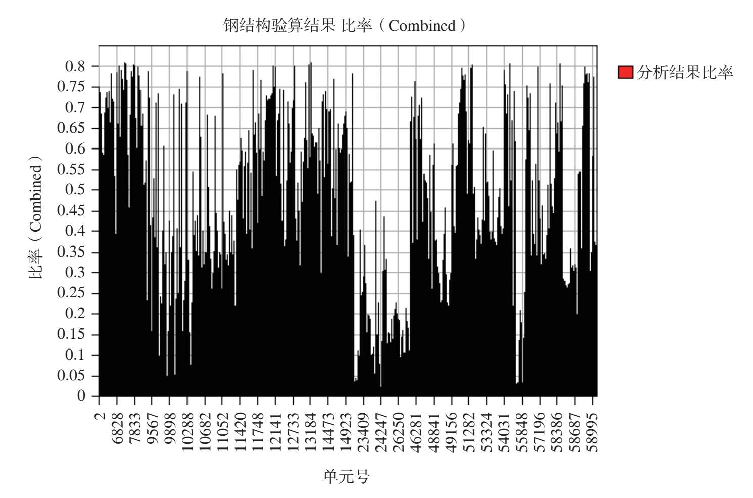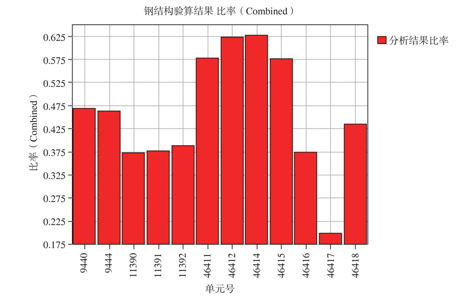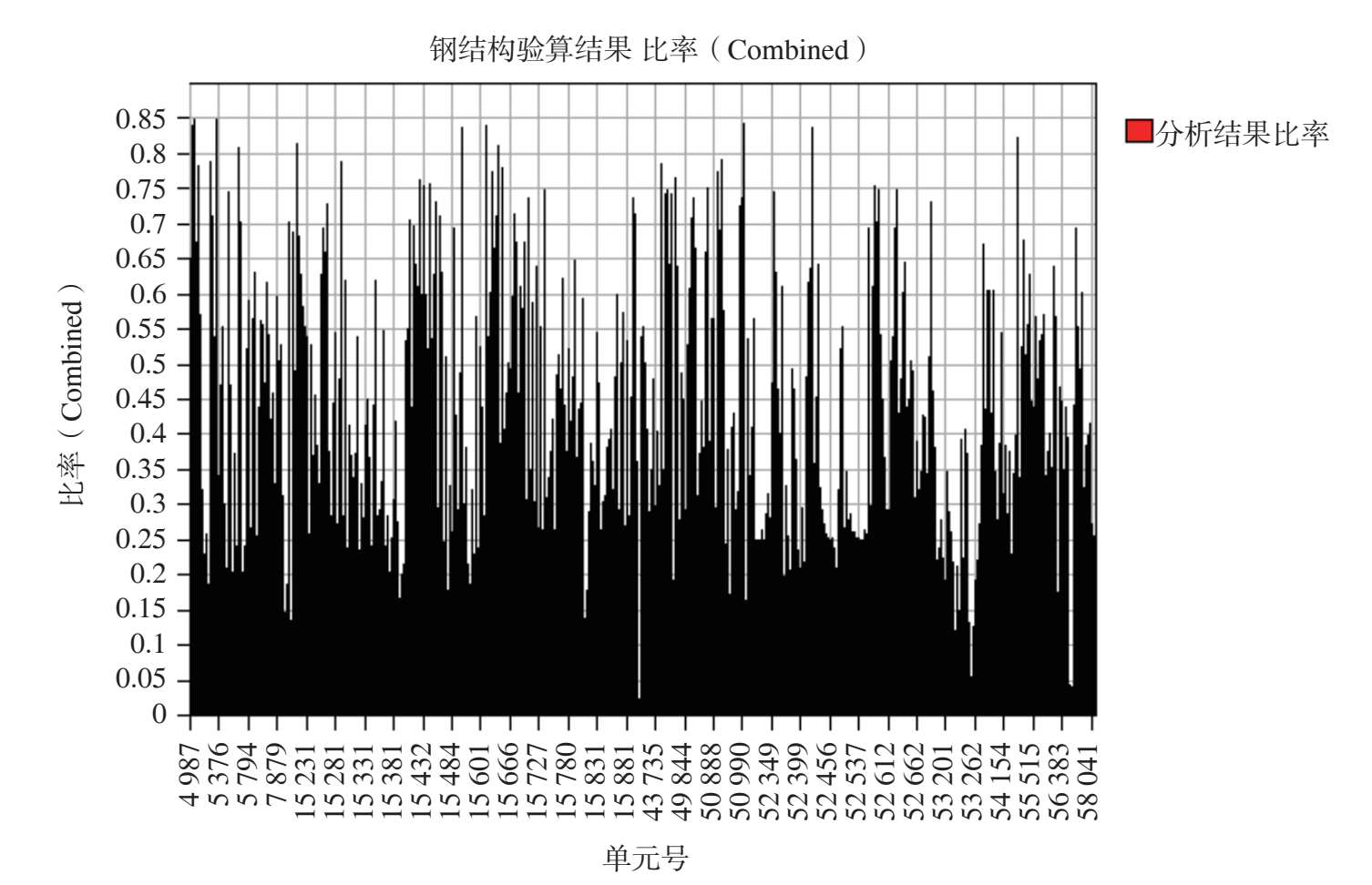 图 2-54 最不利组合工况作用下其余钢构件杆件应力比
