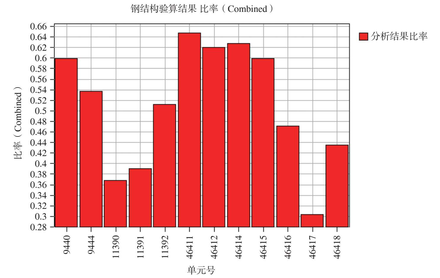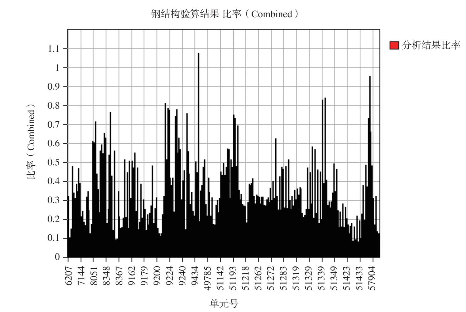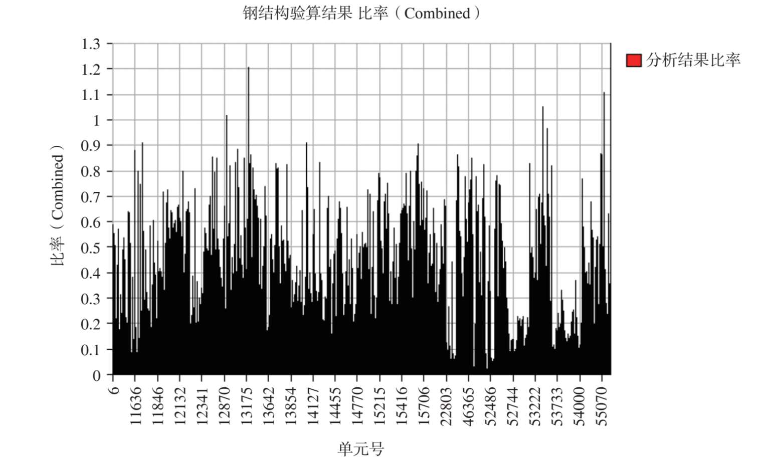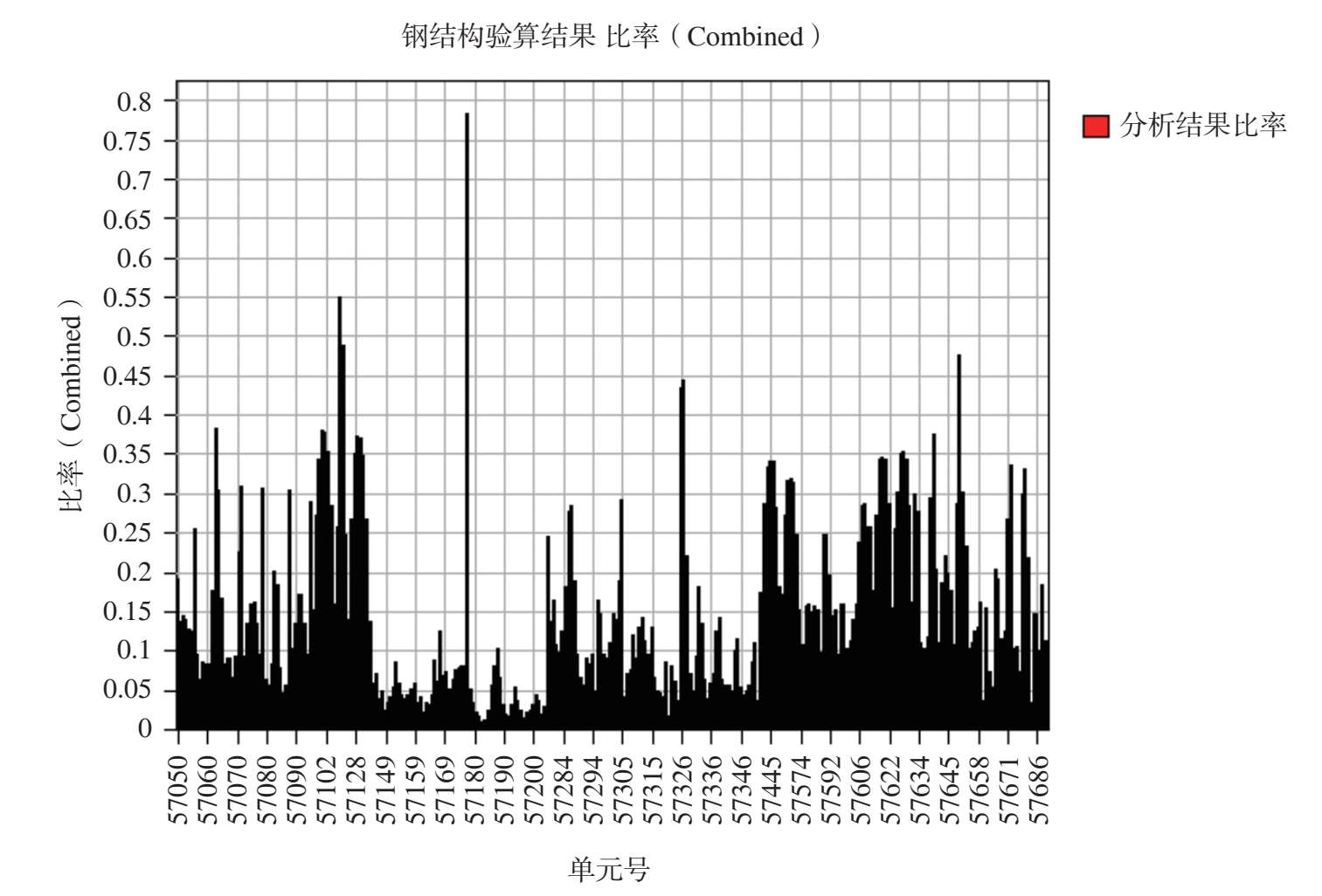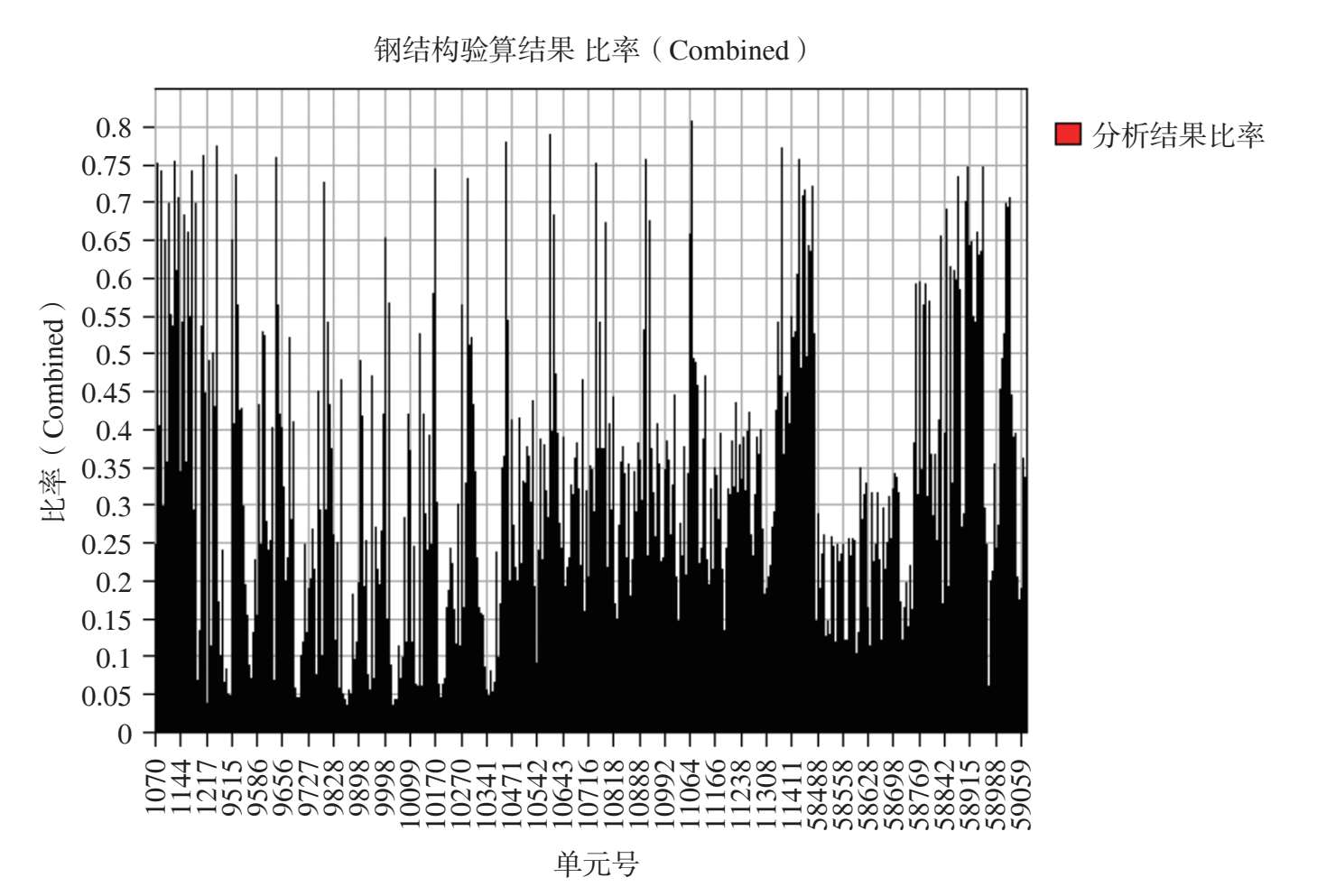 图 2-54 最不利组合工况作用下其余钢构件杆件应力比