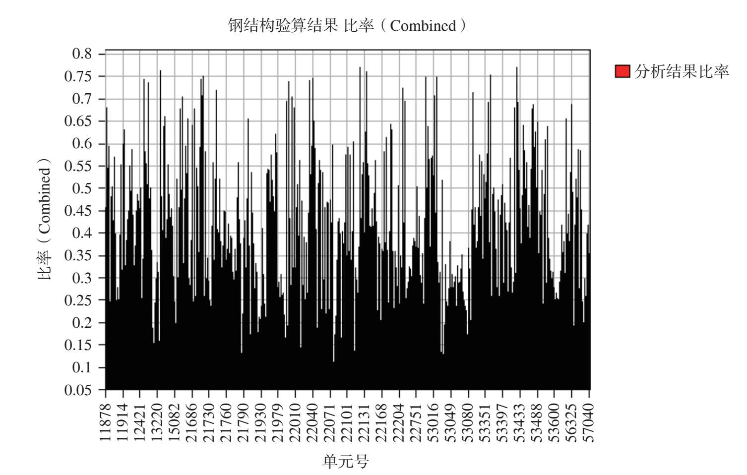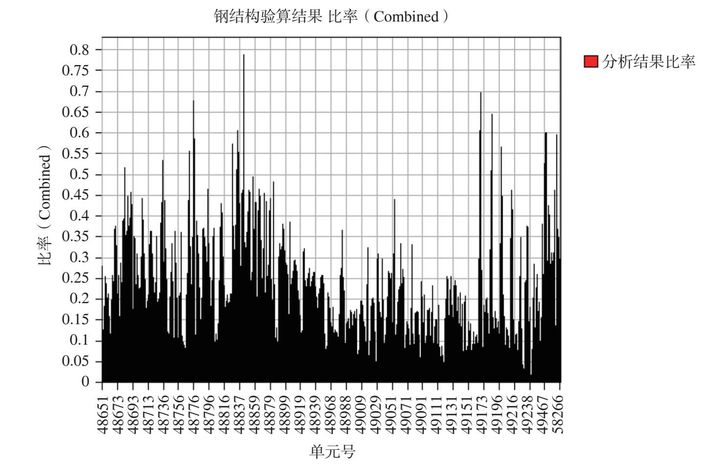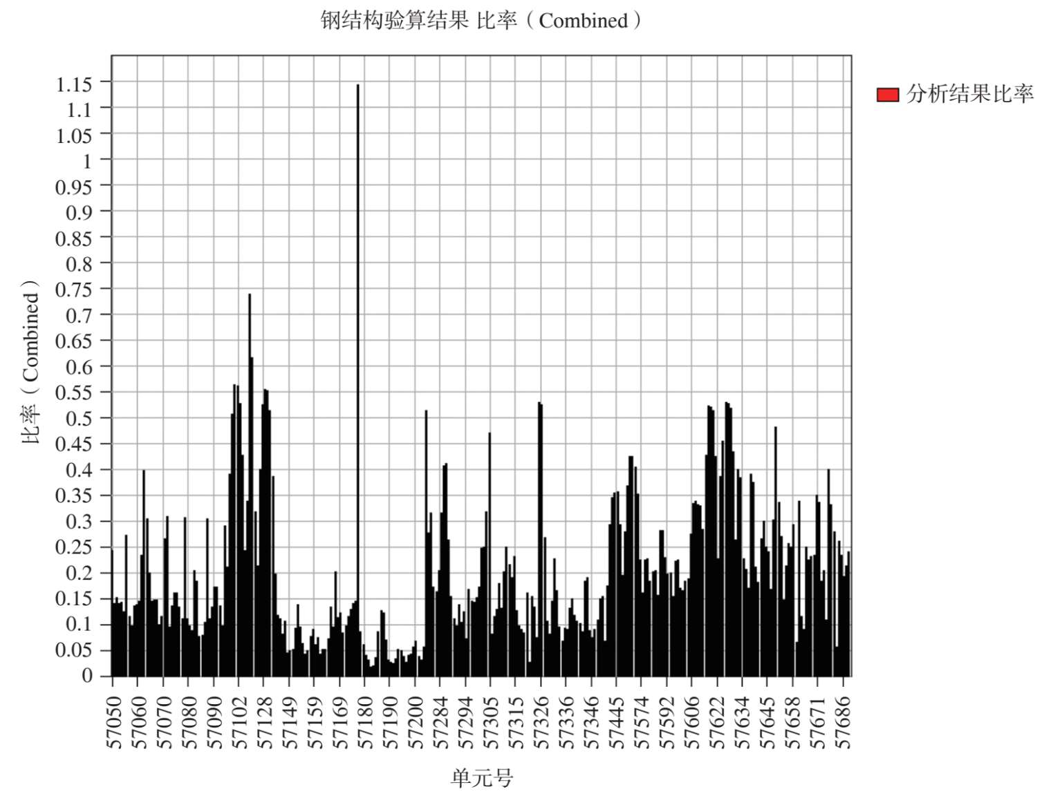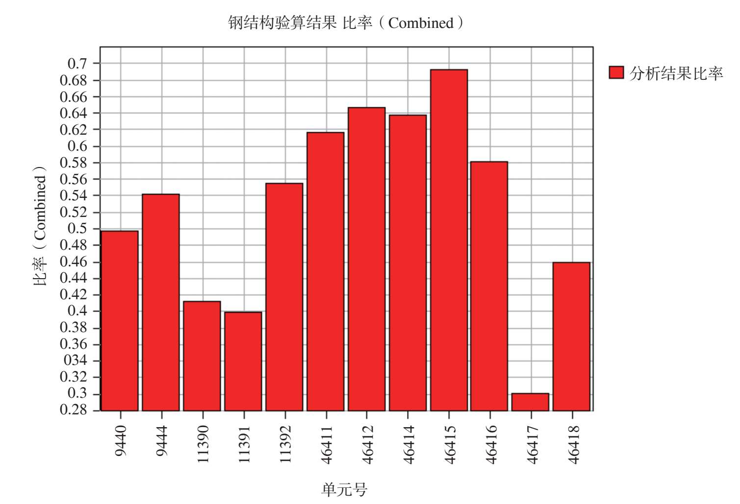 图 2-54 最不利组合工况作用下其余钢构件杆件应力比