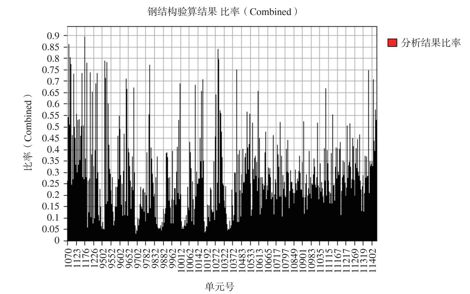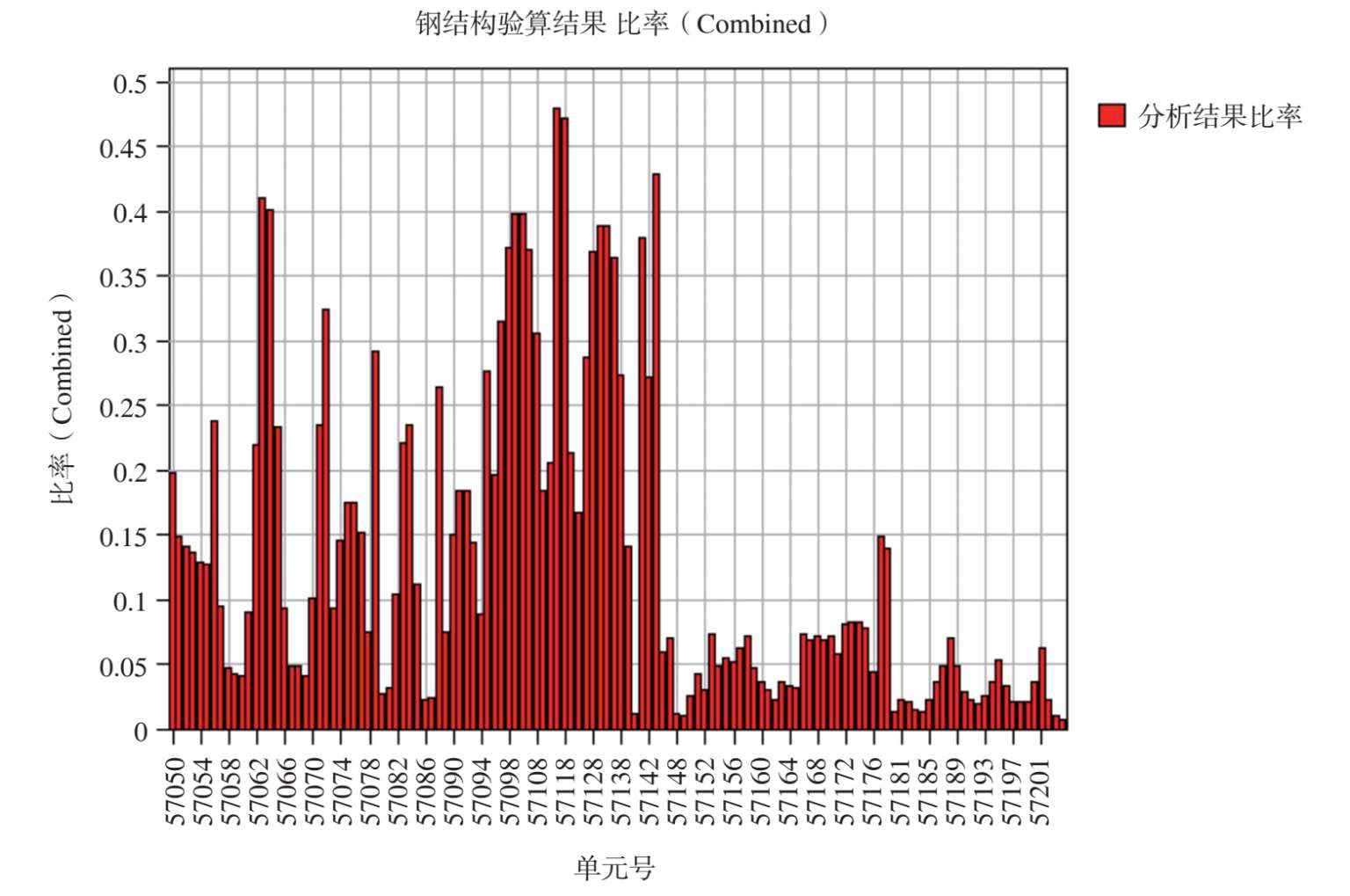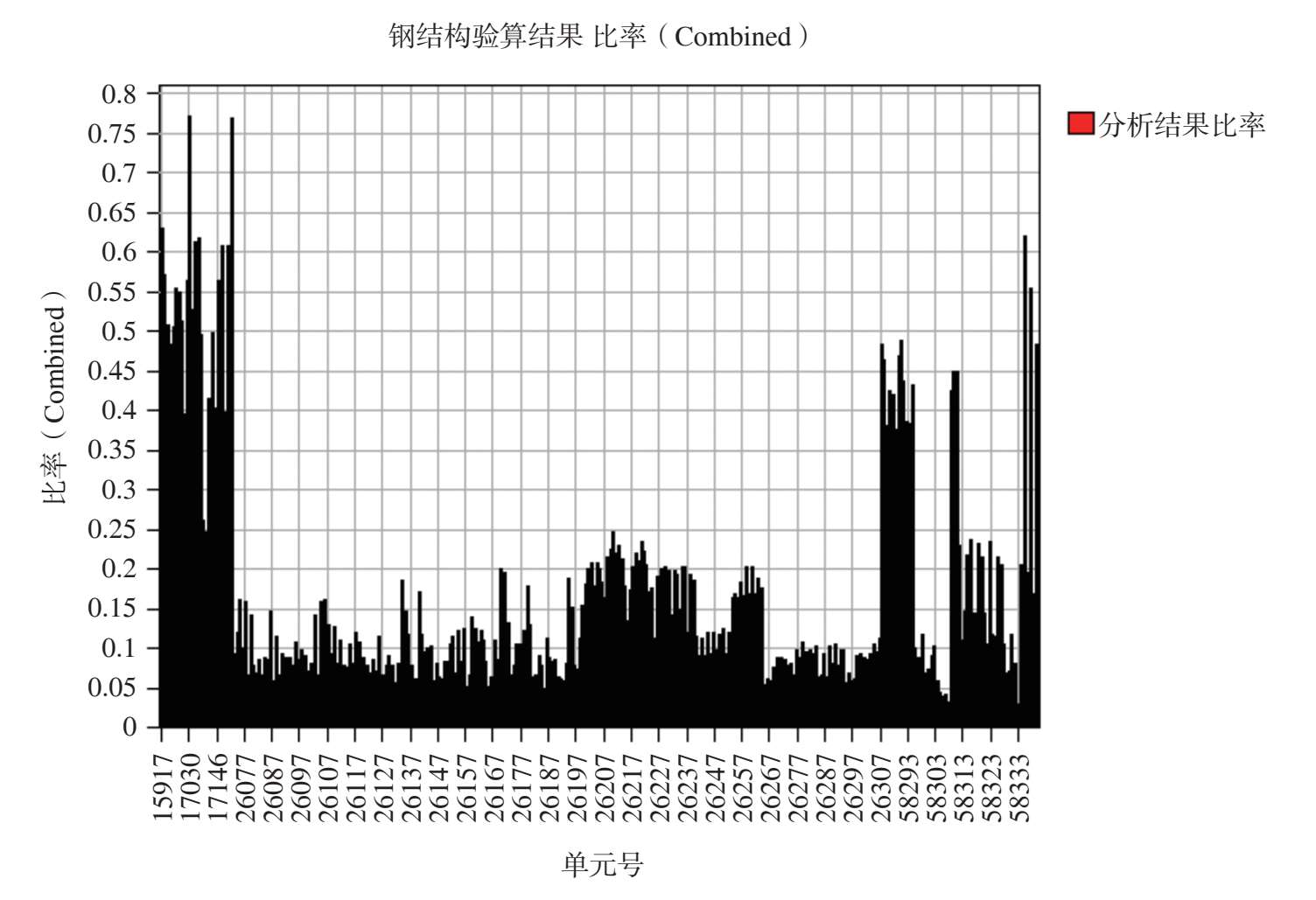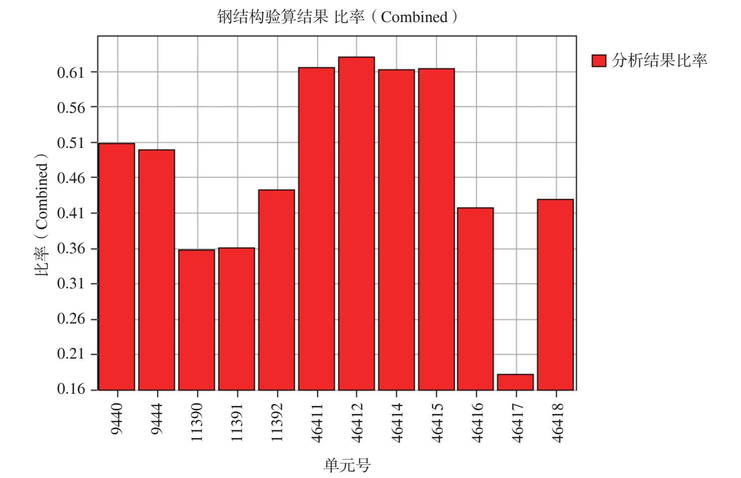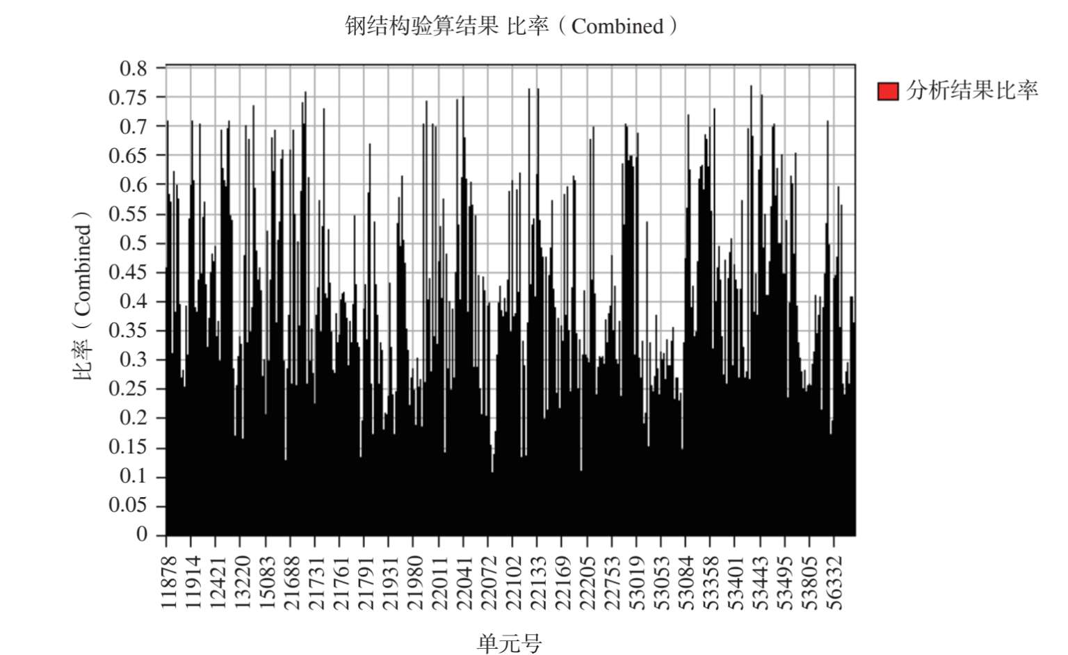 图 2-54 最不利组合工况作用下其余钢构件杆件应力比