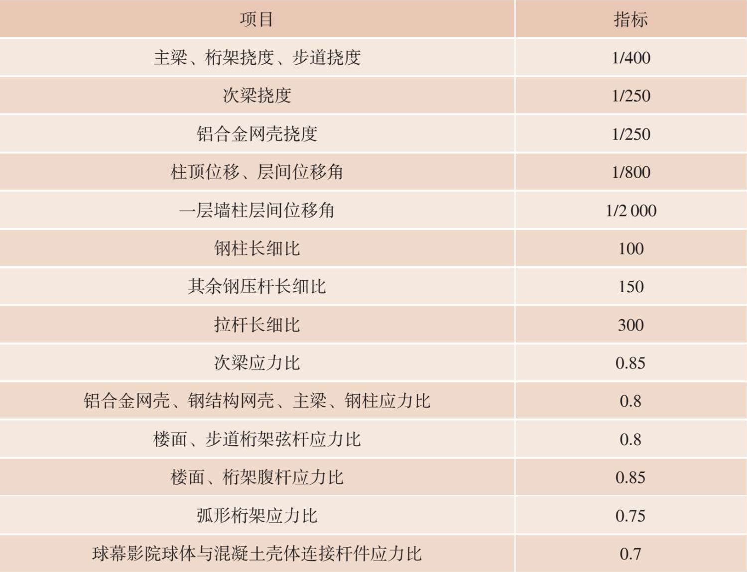 表 2-1 结构位移及构件性能控制指标