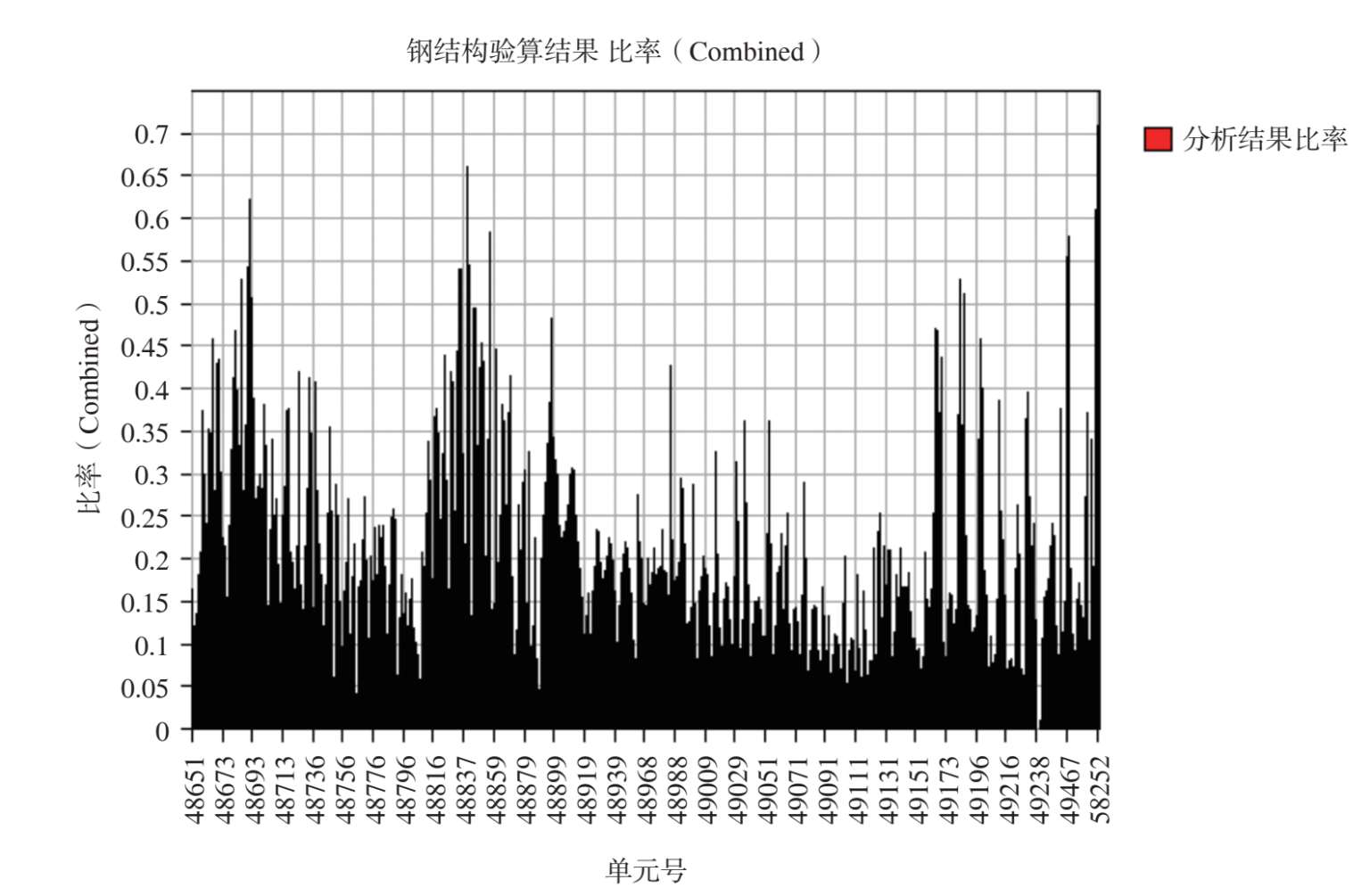 整体模型杆件应力比分析结果如图 2-51~图 2-55 所示。