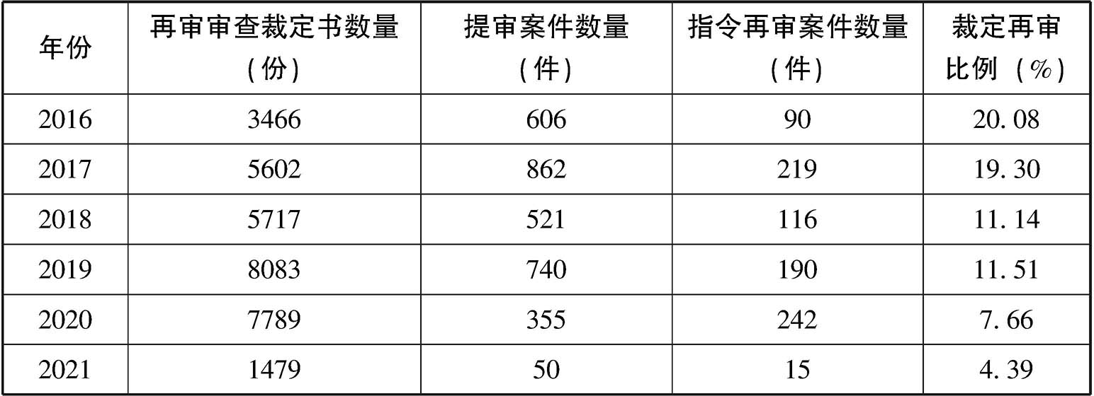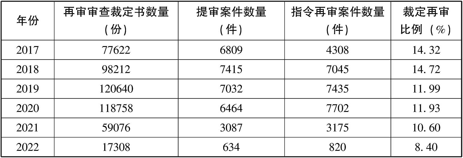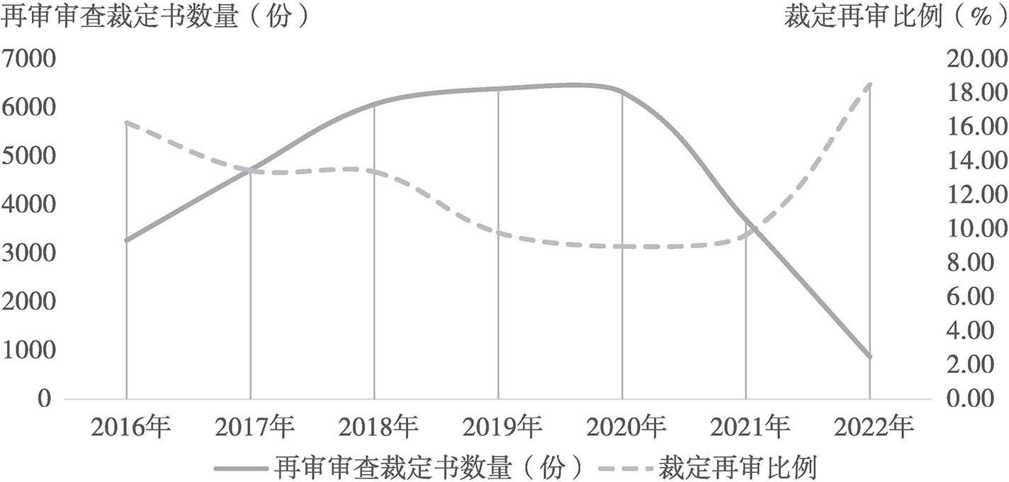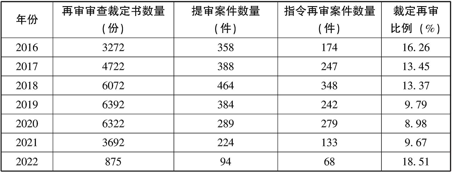 图1-1 2016年至2022年最高人民法院再审审查裁判情况