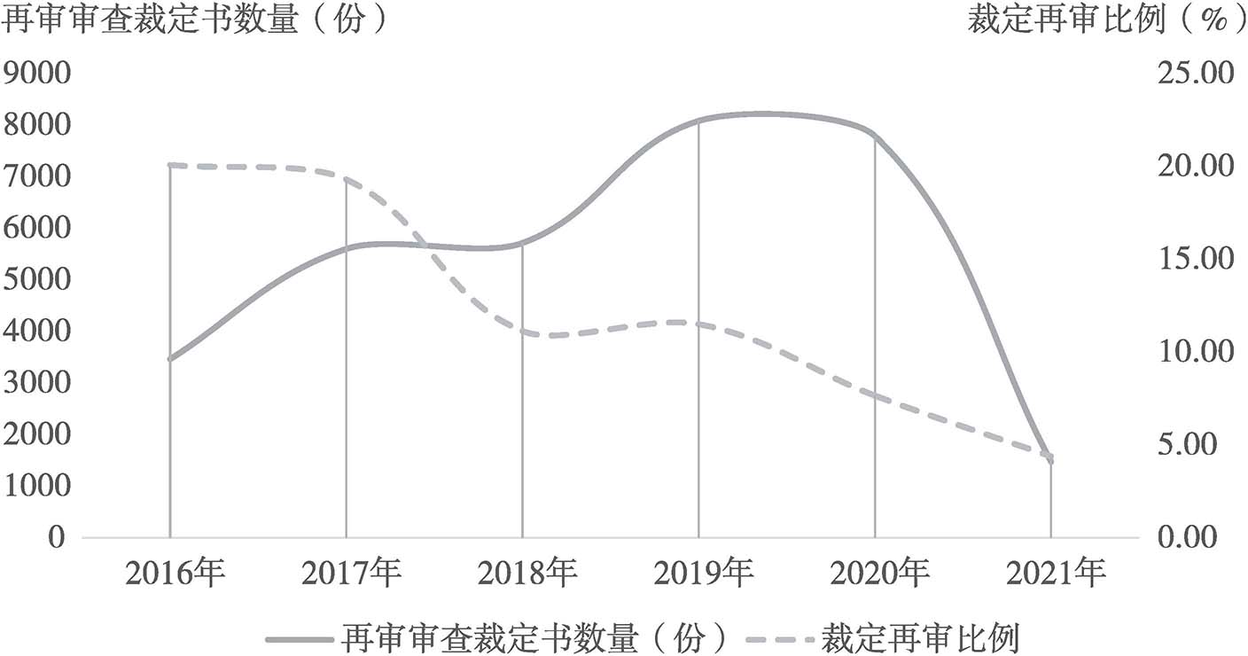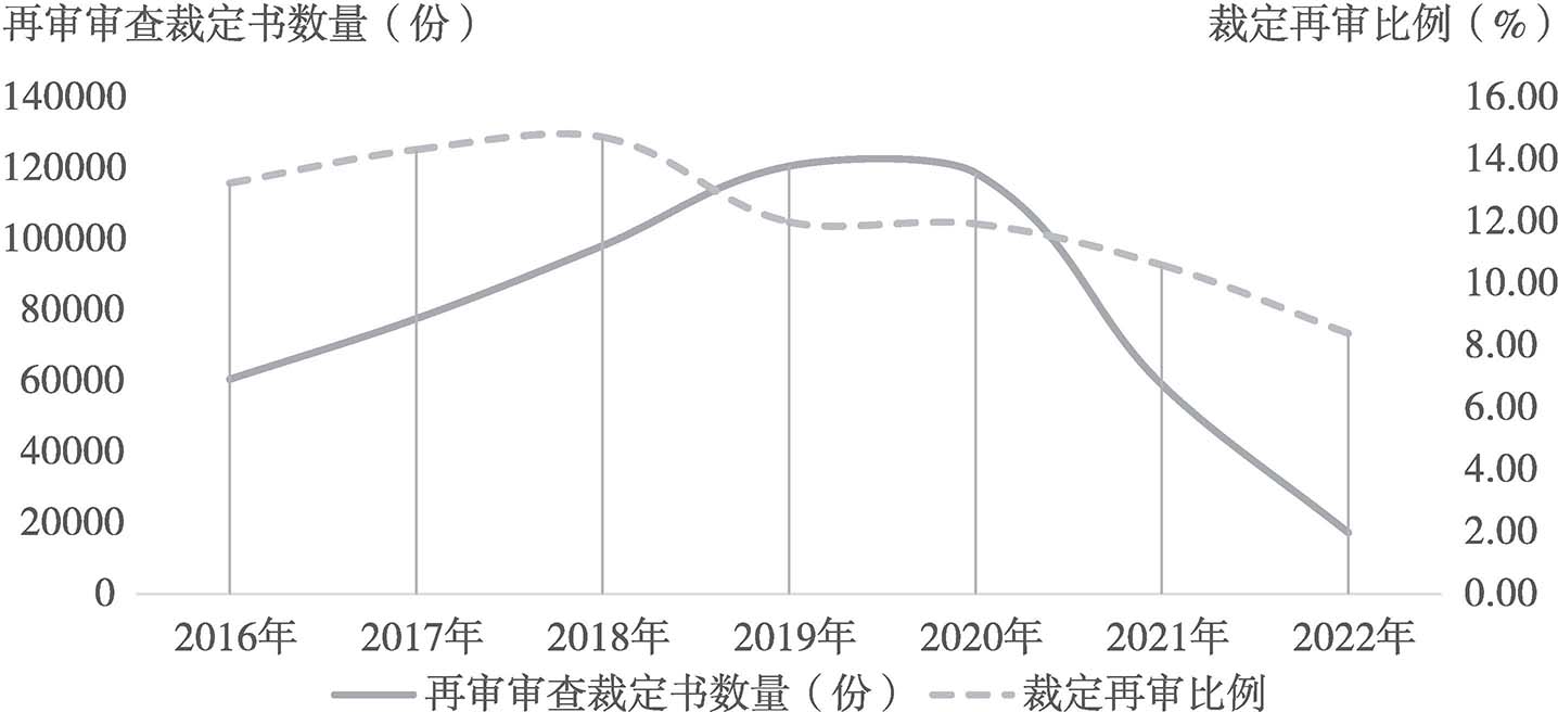 2016年至2022年,最高人民法院民事再审裁定的基本情况如表1-2及图1-1所示。